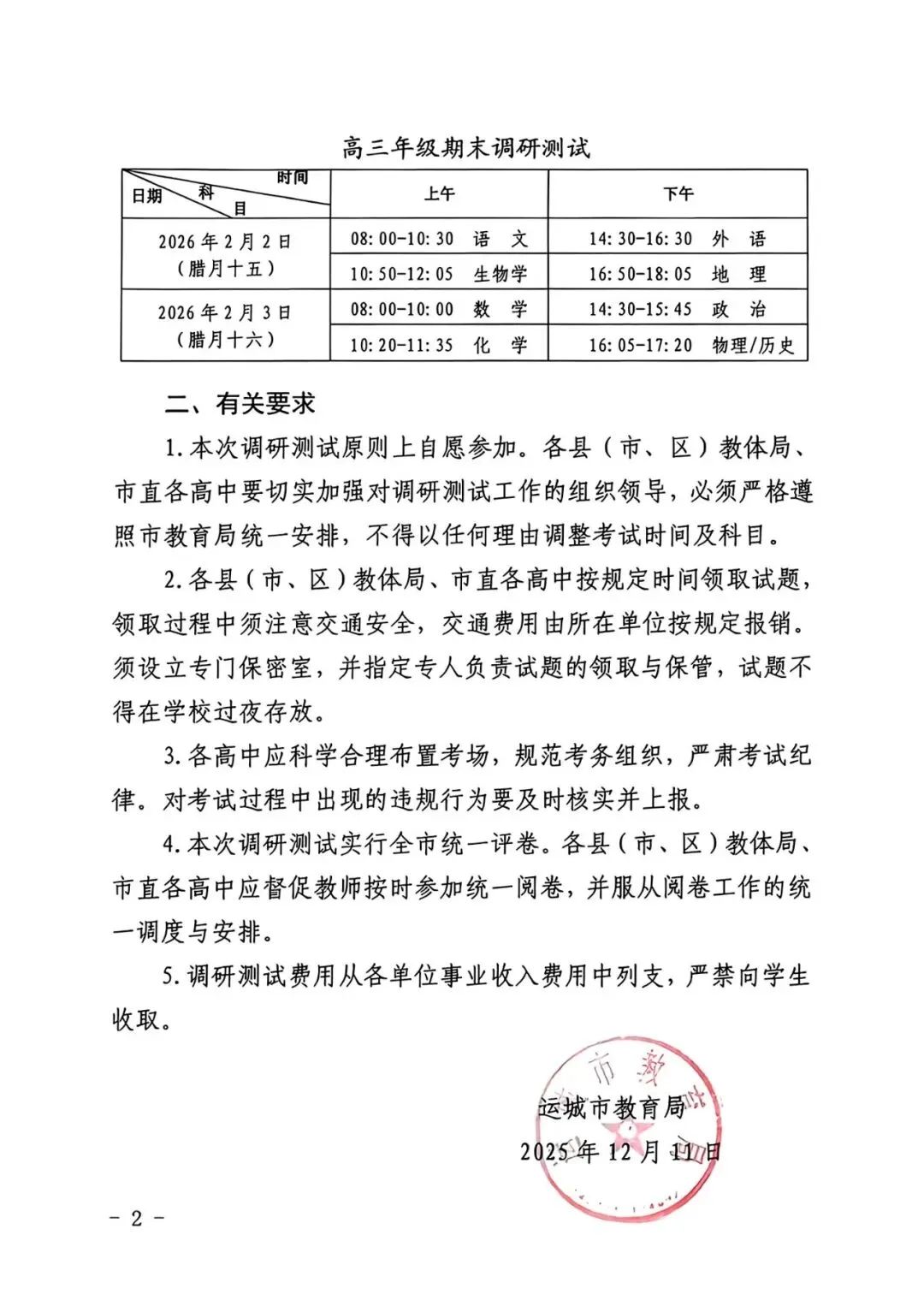联考时间:2026年2月2-3号