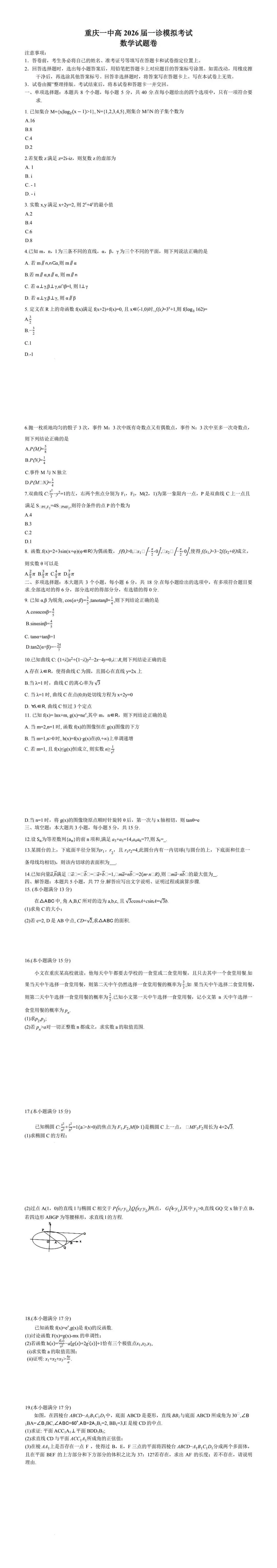 「重庆一中2026届高三一诊模拟考试数学试题.pdf」,复制整段内容,打开最新版「夸克APP」即可获取。