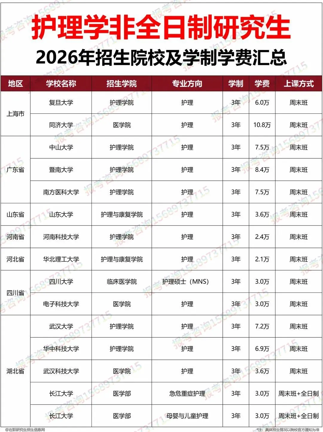 27考研:全国【护理学】非全日制研究生院校盘点(专业方向/学制/学费/上课方式)