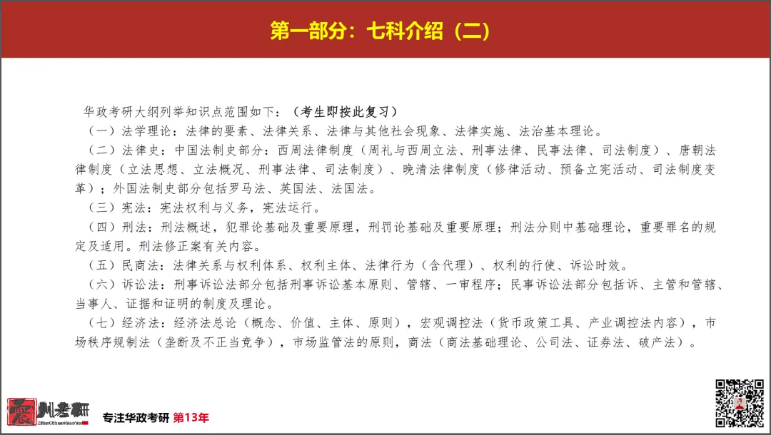 公开课直播 | 27届华政考研先导公开课第3课-法学综合七个部门法介绍和复习技巧、复习思路