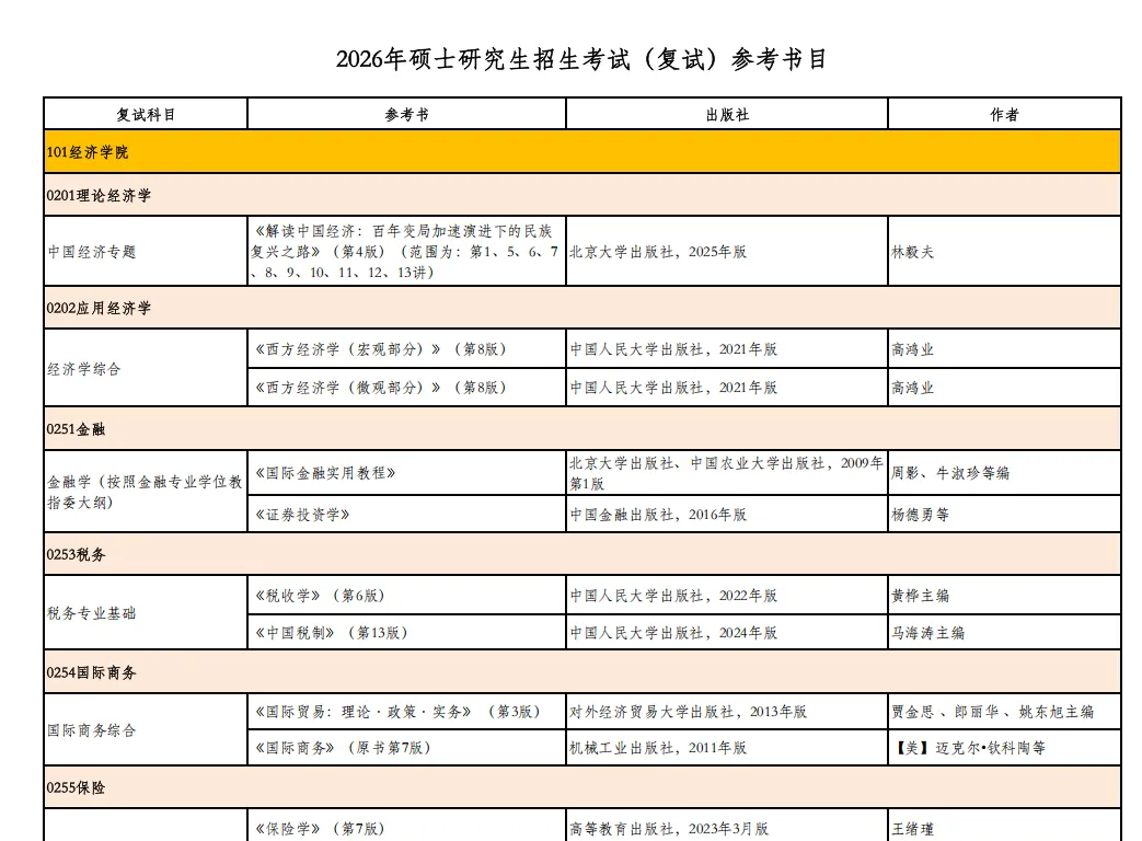 北京工商大学发布2026年硕士研究生招生考试(复试)参考书目。