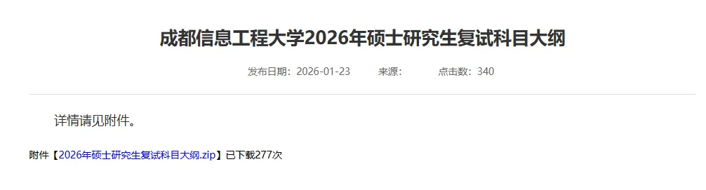 成都信息工程大学发布2026年硕士研究生复试科目大纲。