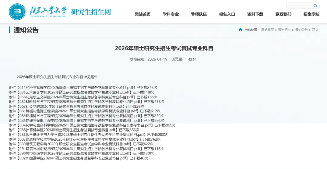北京工业大学发布2026年硕士研究生招生考试复试专业科目。