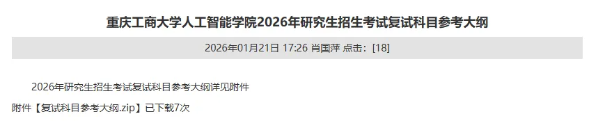 重庆工商大学人工智能学院发布2026年研究生招生考试复试科目参考大纲。