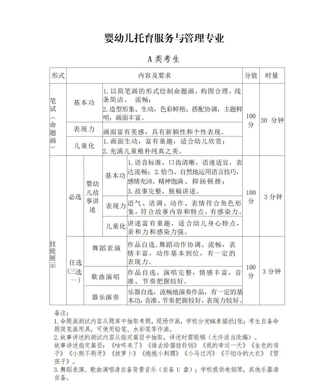 1.专业组一的专业(婴幼儿托育服务与管理、中文)采取笔试+技能展示的方式进行考察。