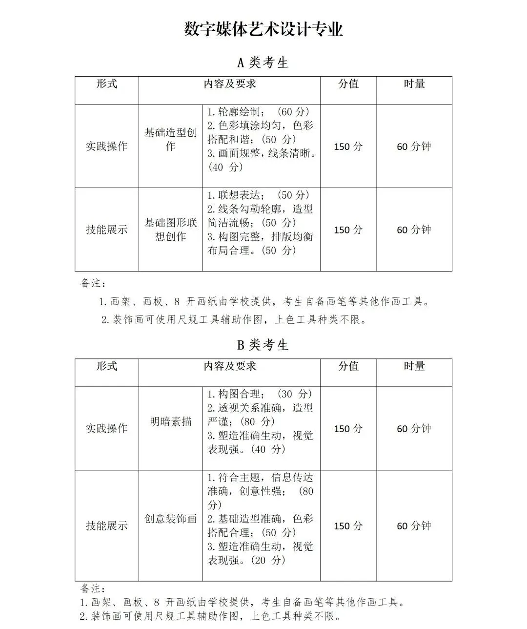 2.专业组二、三的专业(数字媒体艺术设计、社会体育)采取实践操作+技能展示的方式进行考察。