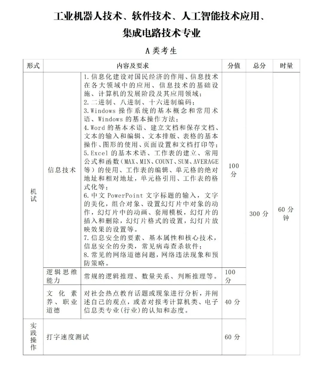 3.专业组四的专业(工业机器人技术、软件技术、人工智能技术应用、集成电路技术)采取机试+实践操作方式进行考察。