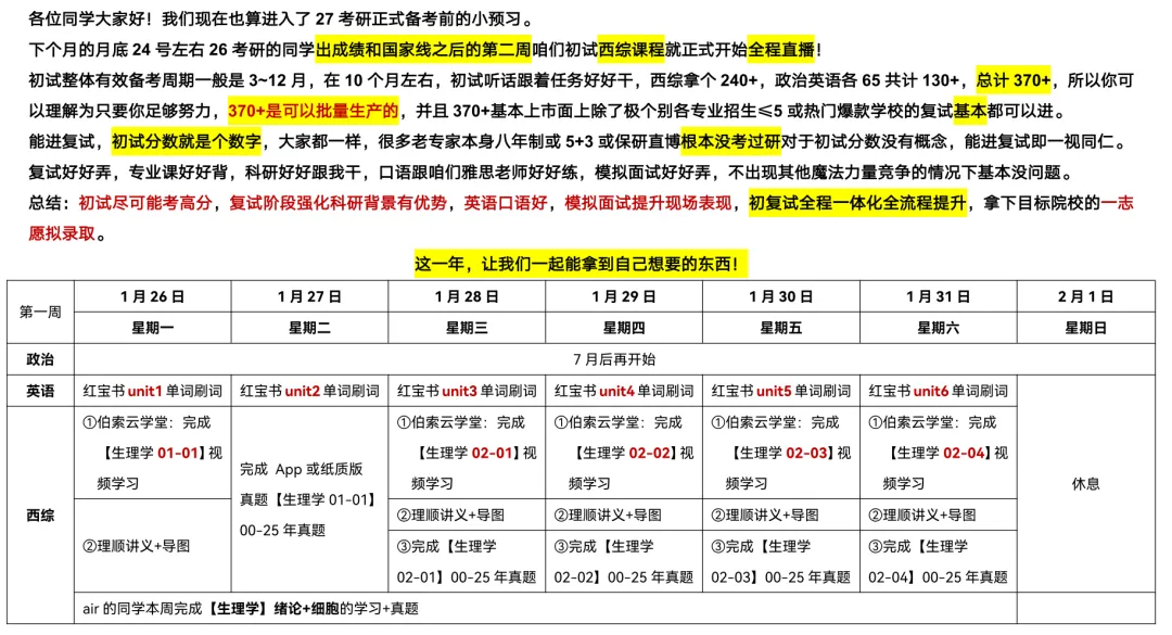 下个月的月底24号左右26考研的同学出成绩和国家线之后的第二周咱们初试西综课程就正式开始全程直播!