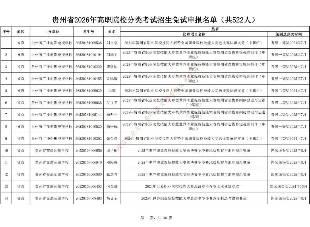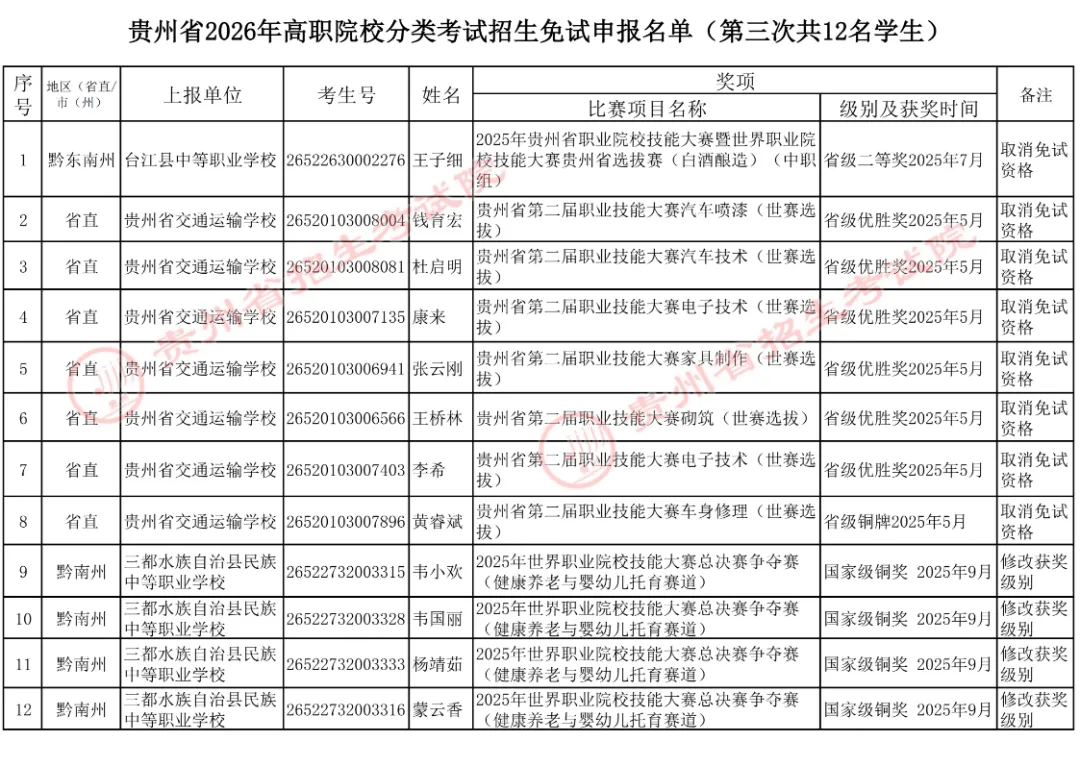 2026分类考试,哪些学生获得了免试资格?有你认识的吗?