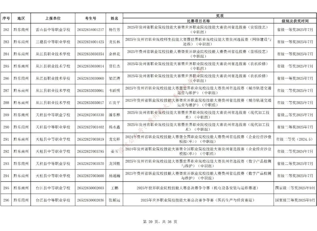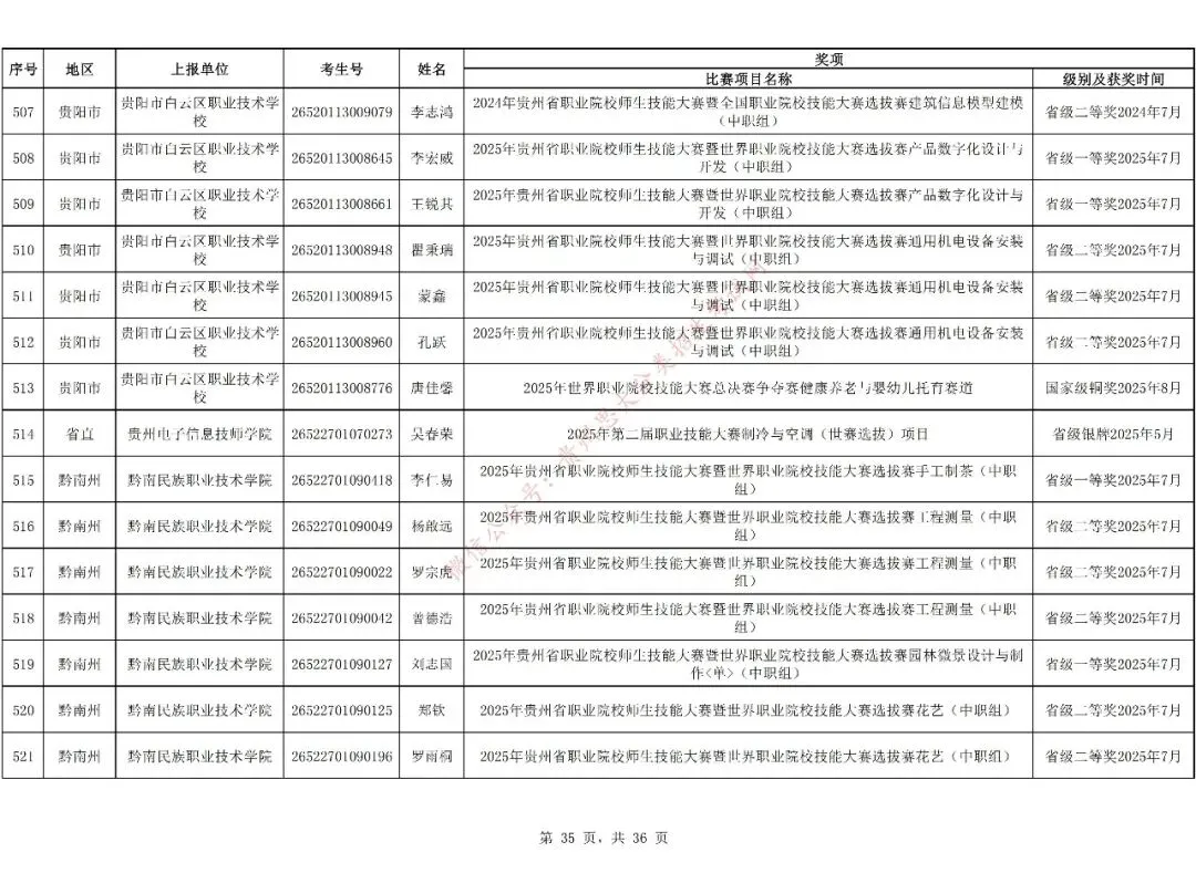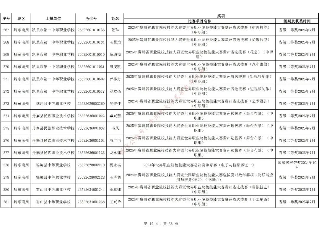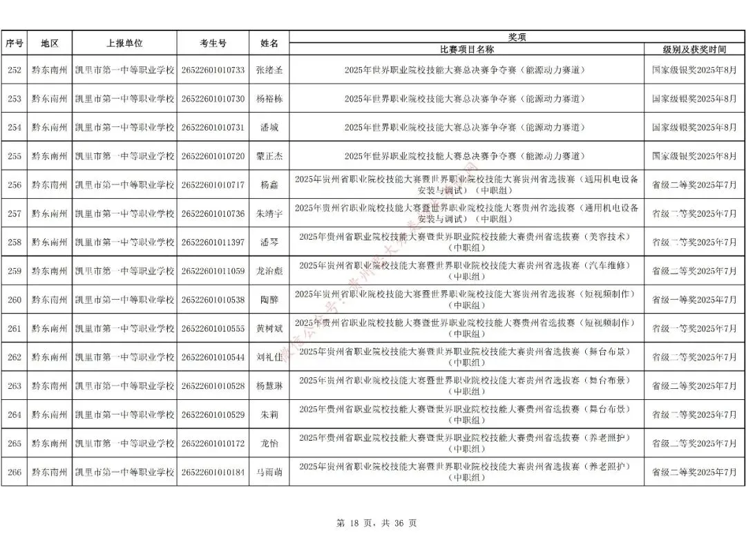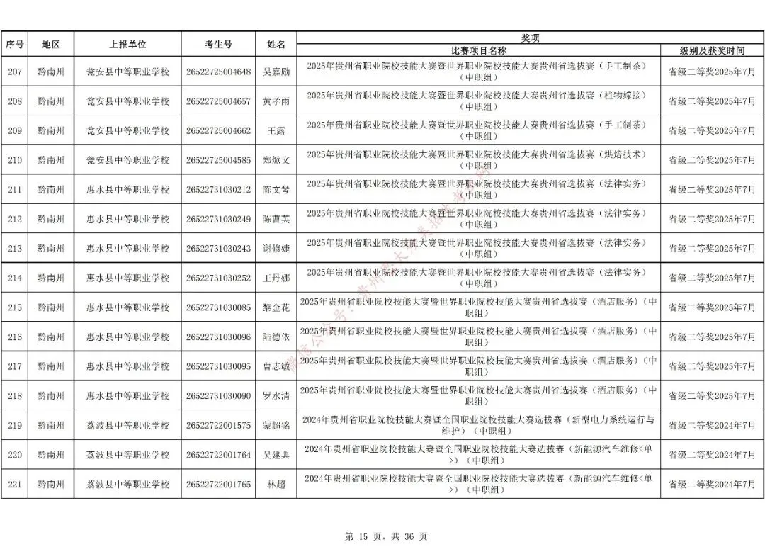 1.对在校期间获教育部牵头举办的全国职业院校技能大赛三等奖及以上、教育厅牵头举办的贵州职业院校技能大赛二等奖及以上的中职生可免试进入高职(专科)院校学习,但专业须相同或相近。