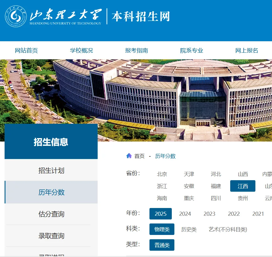 >最高分556分!山东理工大学2025年江西高考本科各专业录取分数线!