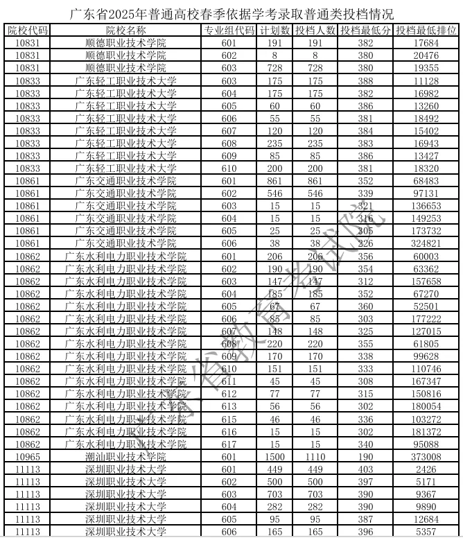 👇获取完整版2025年广东省普通高校春季依据学考录取普通类投档情况👇