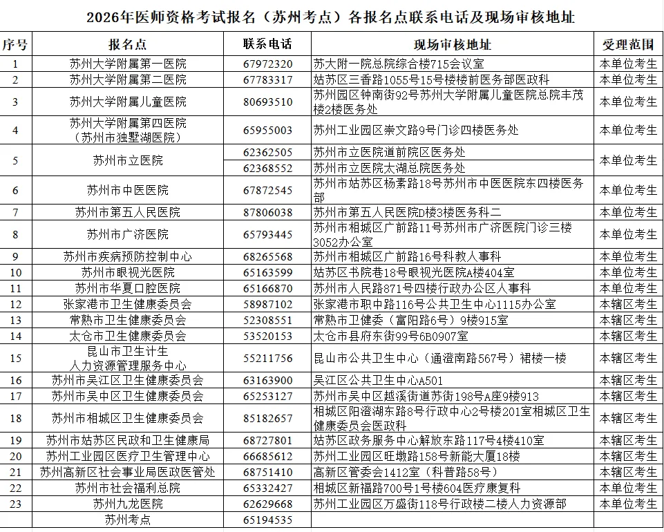 根据《中华人民共和国医师法》《医师资格考试暂行办法》《国家卫生健康委员会医师资格考试委员会公告》(2026年第1号)以及《2026年医师资格考试江苏考区公告》规定,现将我市2026年医师资格考试报名与资格审核等有关事项通知如下: