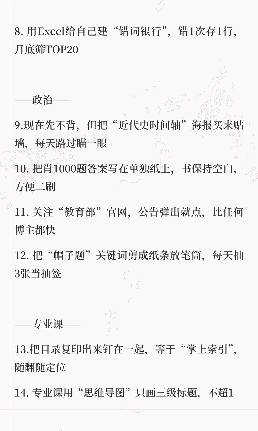 14. 专业课用“思维导图”只画三级标题,不超1张A4