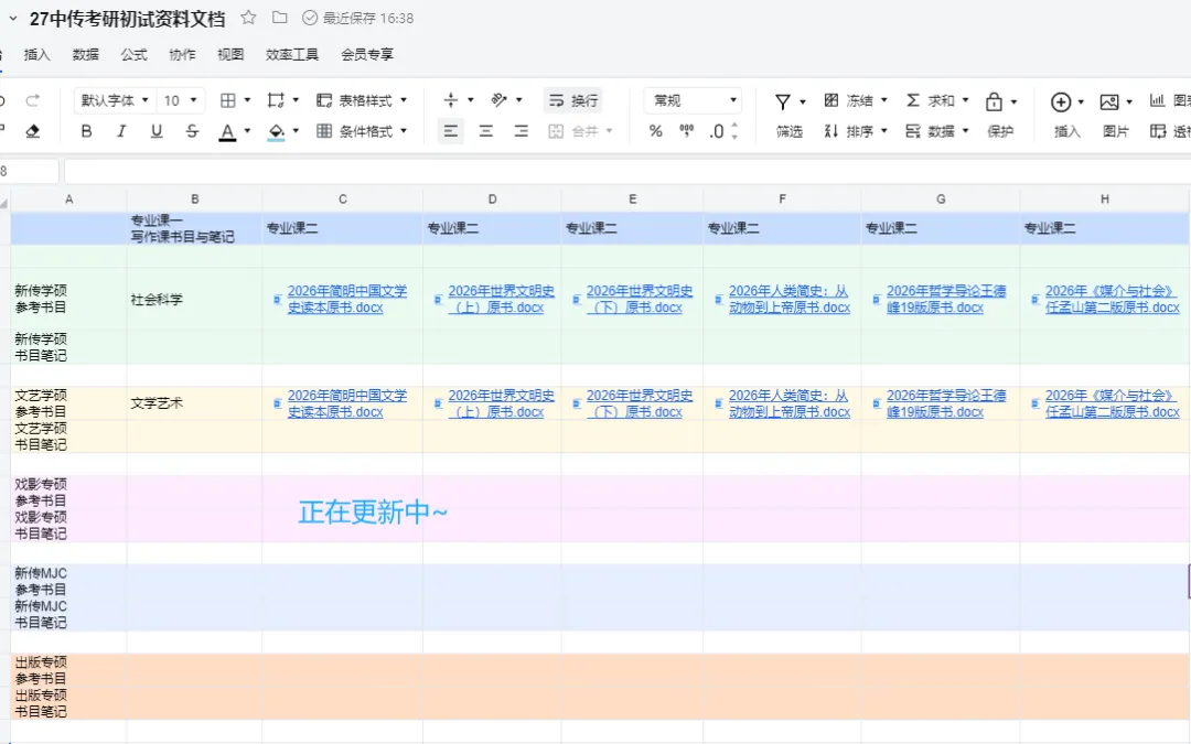 27文档,是我们用于帮助所有备考中传的同学,实现复习资料自由的知识资料合集文档。目前该文档正在更新中传考研的各专业参考书目(现在已经更新新传学硕和艺术学硕参考书目咯~),且是word版本的,方便同学直接下载,使用word做笔记。