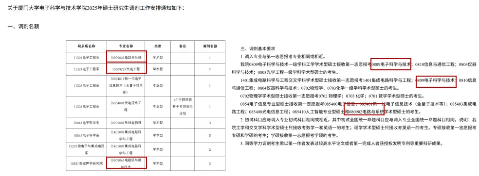 🌰 以2025年厦门大学电子科学与技术学院的调剂规则为例,一志愿为0809电子科学与技术的考生,原则上在初试专业课考试内容相近的情况下,可以调剂到该校080902、0809Z2、080904、140100和085401及085408。