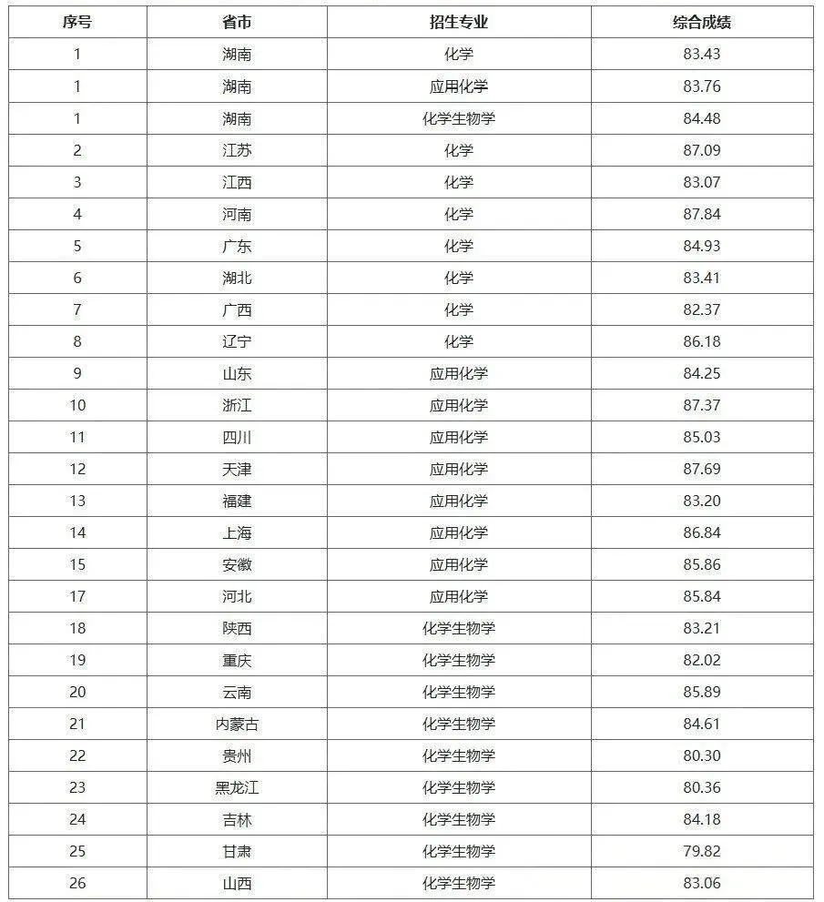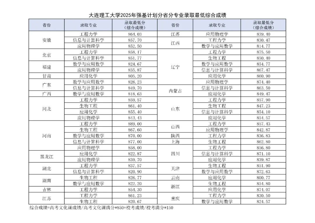 说明:下表按照强基计划录取综合成绩百分制(校测成绩15分)进行折算,仅供查阅参考。