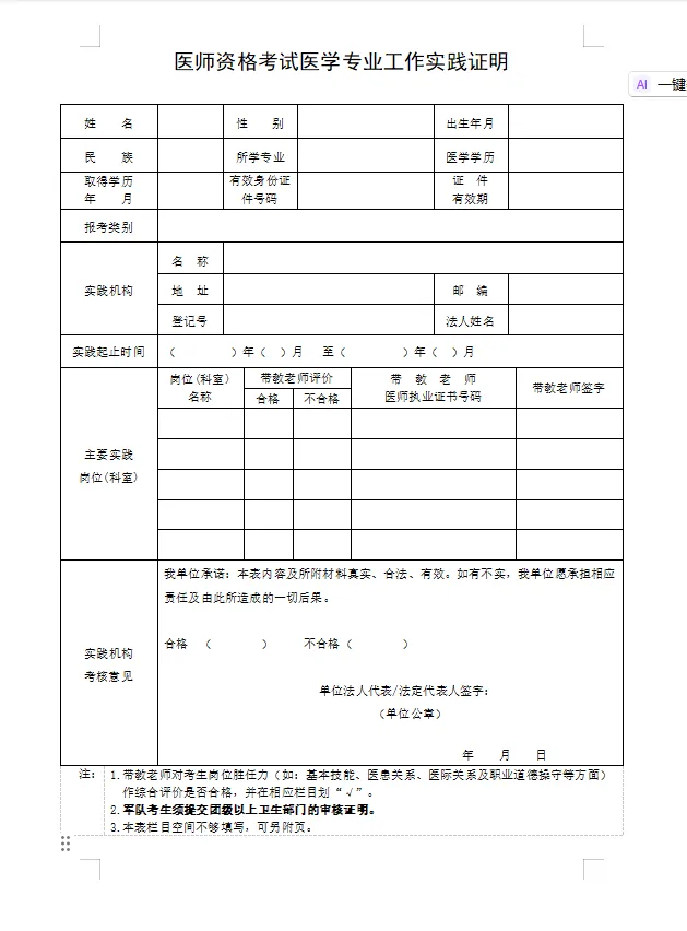 3.临床实践训练经历满一年证明及个人承诺书2026