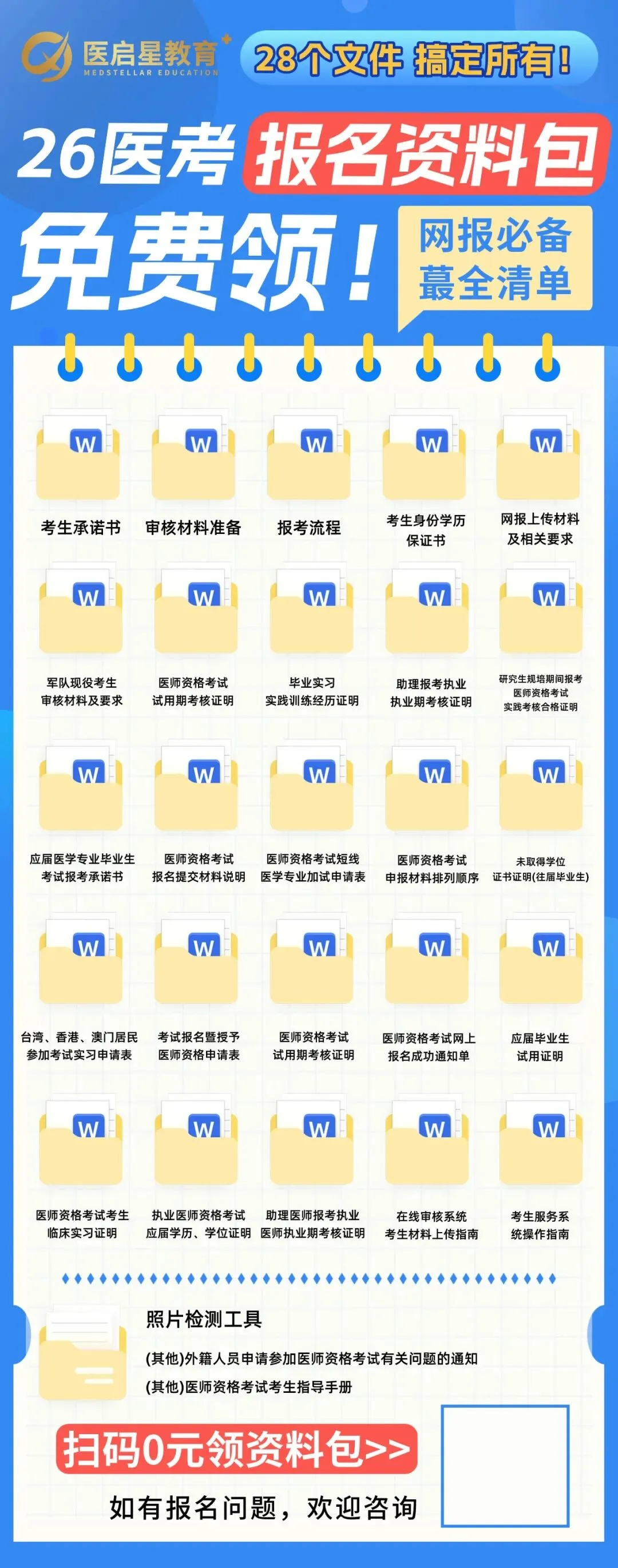 考试报名包括网上报名、资格审核两个部分,资格审核工作通过“线下现场确认+网上审核”模式进行,考生仅完成网上报名,未及时进行现场资格审核的该报名无效。2025年在国家实践技能考试基地参加实践技能考试成绩合格的考生,2026年网上报名成功、资格审核通过并在规定时间内有效缴费后,可直接参加医学综合考试。