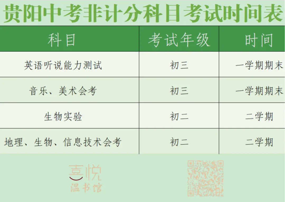 贵阳市自主命题科目(3科):历史(40分)、道德与法治(40分)(两科合卷)、体育(50分)。