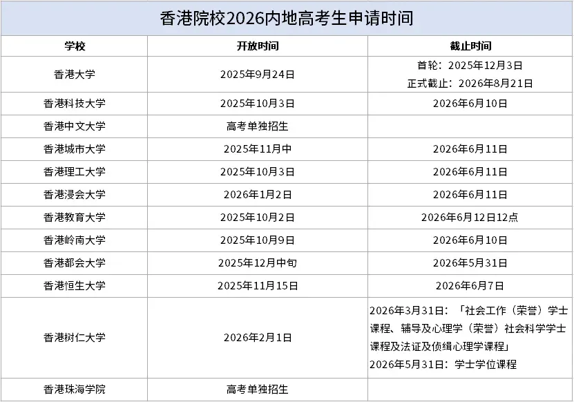 2026 港澳学校申请时间线