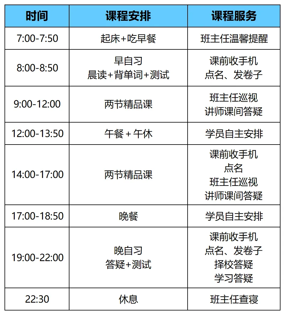 提供吃住学一体、超越高三式的学习模式