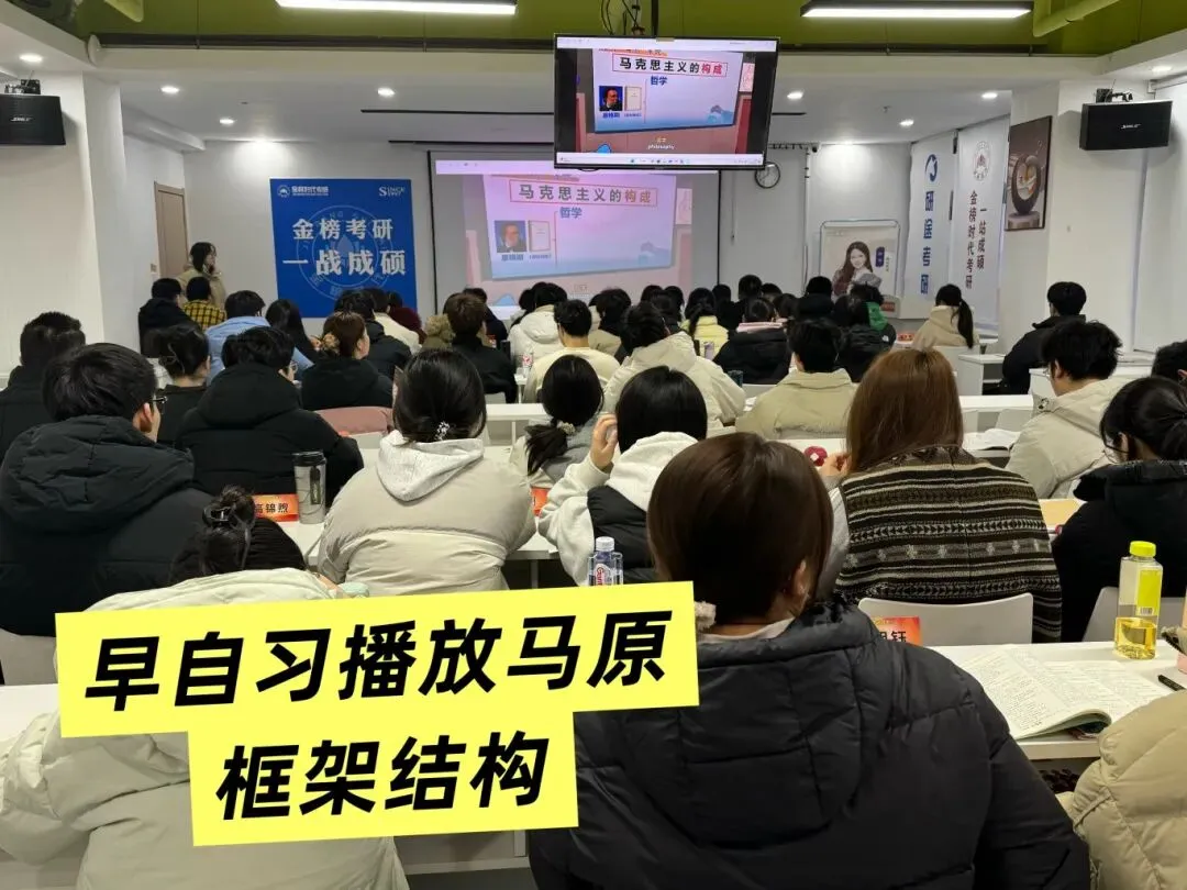 早自习的余热未消,短暂休整后,同学们主动上交手机,以百分百的专注迎接韩雪老师的马原精讲课堂。作为考研政治领域经验丰富的资深讲师,韩雪老师以“轻松幽默、举一反三”的授课风格著称,她将抽象的哲学原理与鲜活的现实案例相结合,把枯燥的理论条文转化为易懂的逻辑推演。