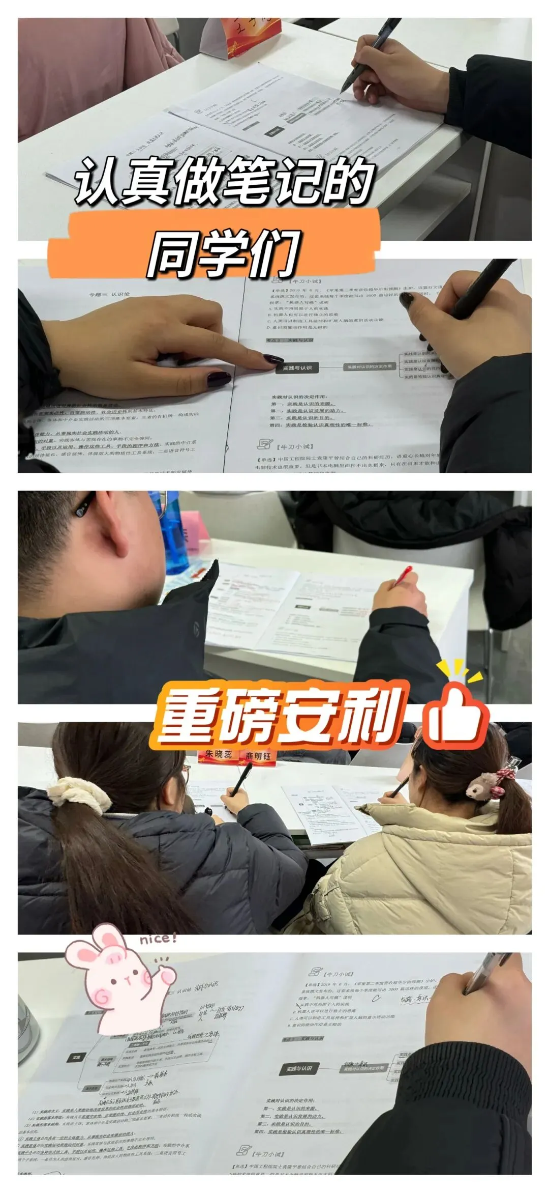 当韩雪老师遇上考研政治,笔记成为最好的“提分密码”!课堂上,同学们专注记录、重点标注,把抽象的原理转化为清晰的文字,让每一份笔记都成为后期背诵的“黄金资料”✅