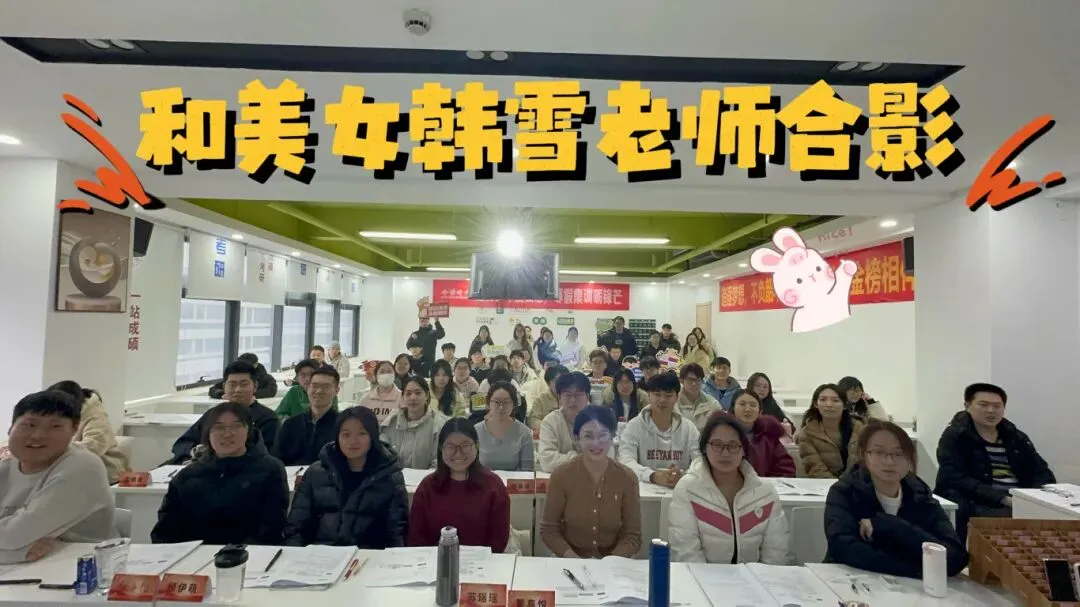 课程的最后,同学们纷纷围在韩雪老师身边,用相机定格下这段难忘的学习时光。镜头里,一张张年轻的脸庞洋溢着收获的喜悦,一双双坚定的眼眸饱含着对未来的期许。合影的快门声响起,不仅记录下师生相聚的温馨瞬间,更定格了同学们在考研路上的成长与蜕变。