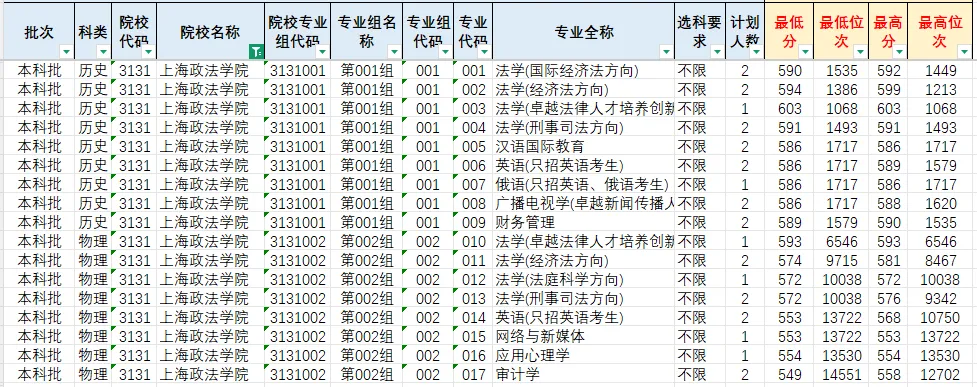学校现有40多个本科专业(方向),其中法学、监狱学、知识产权为国家级一流本科专业建设点,国际经济与贸易、社会工作、思想政治教育、新闻学、经济学、经济与金融、审计学、政治学与行政学、国际政治、广播电视编导为省级一流专业建设点;监狱学、社会工作为国家级特色专业;法学和工商管理为上海市本科专业综合改革试点专业,财务管理和社会工作是上海市应用型本科试点专业;法学专业(人工智能法学方向)为全国首家本科招生专业;人民调解、社区矫正和电视纪录片3个本科专业方向为全国首创,得到了业内高度认可。监狱学、社区矫正专业在“2023年软科中国大学专业”排名中获评A+,位居全国第一。