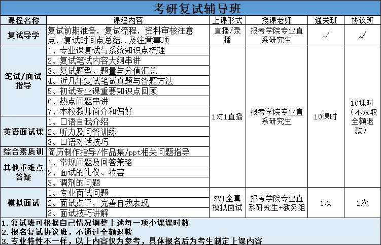今年明德尚行复试班仍然是神仙配置,均是金牌老师亲自授课,专业教务全程护航。课后答疑、自我介绍完善、面试礼仪、全真模拟面试......一样都不落下。点击下方链接查看复试班详细介绍。