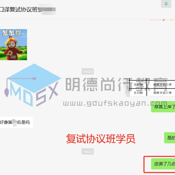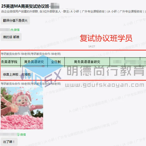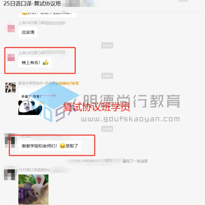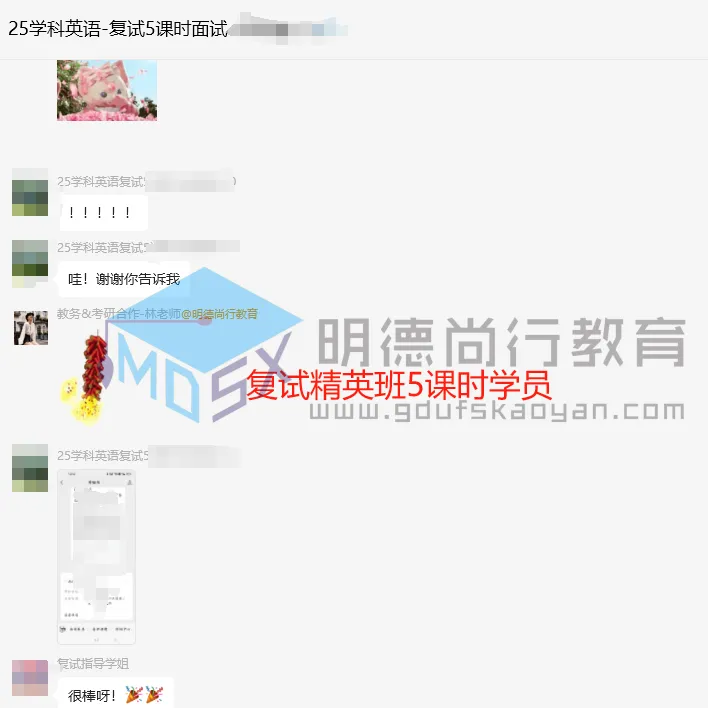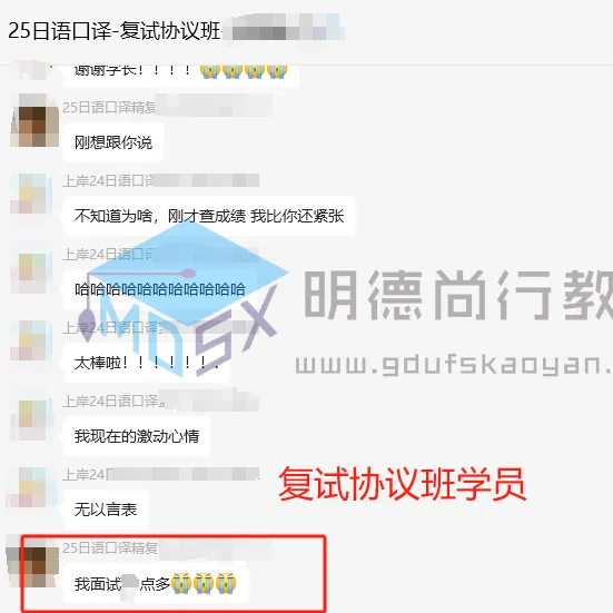 这些年来,明德尚行学员复试通过率不断提升,斩获了学生与家长的一波波好评 。虽然近年来,提面的竞争日益激烈,但是我们不断研究广外的招生要求,增加学生的实力,保障更多的学生圆梦广外。