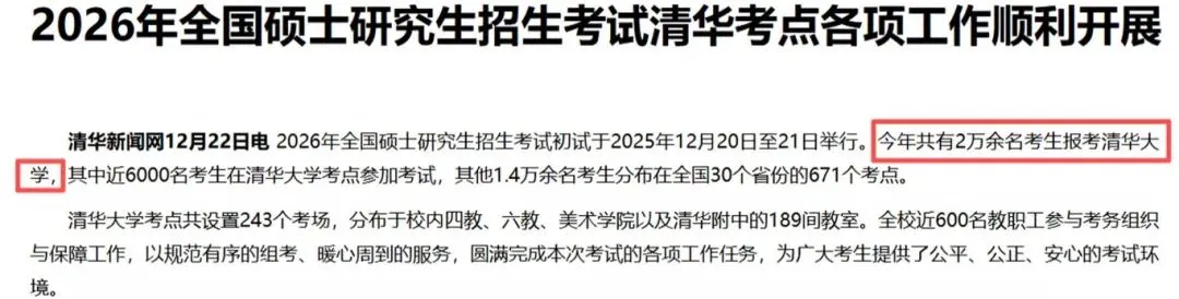 2026年共有2万余名考生报考清华大学硕士研究生,近三年该校报考人数保持相对稳定,顶尖的科研与教学平台,让其始终是学霸们的重点目标。