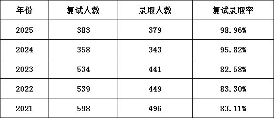 2025年总复试人数383人,拟录取379人,仅1%的淘汰率;