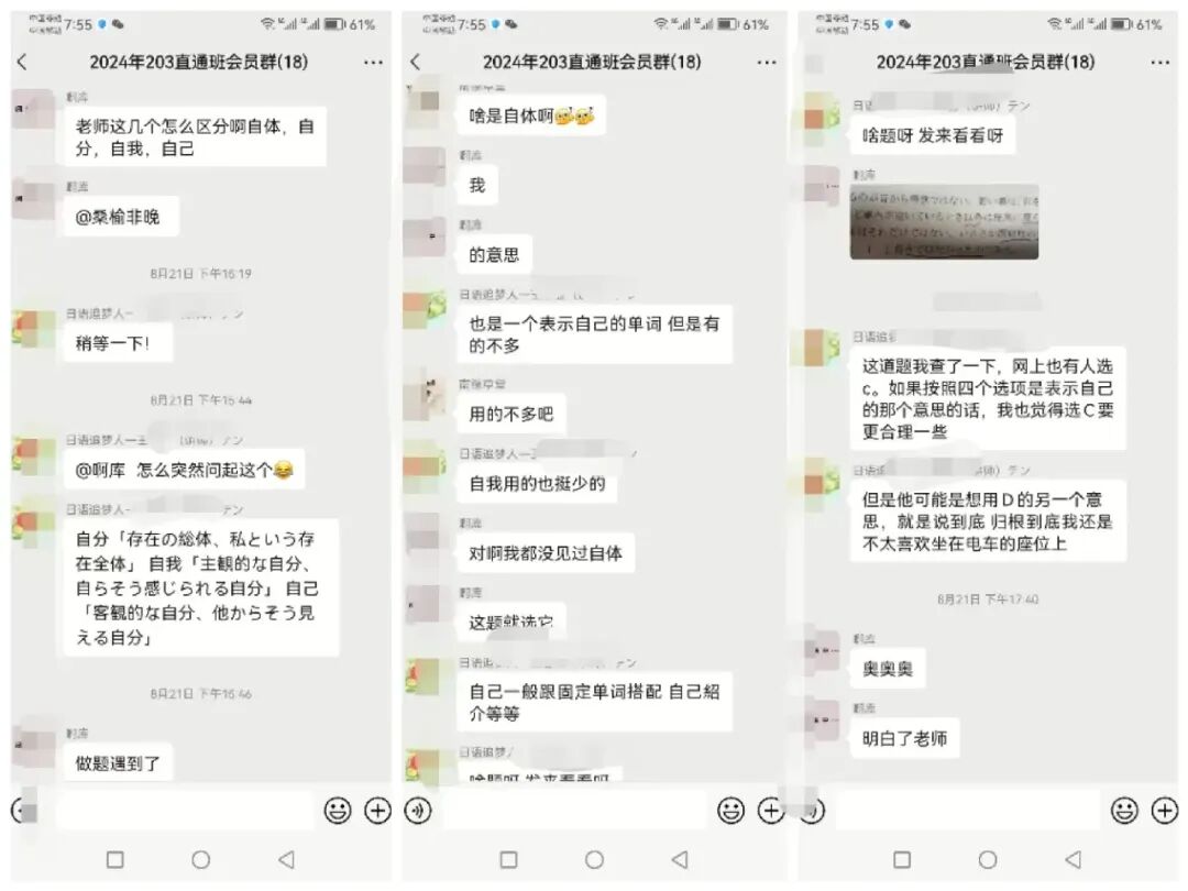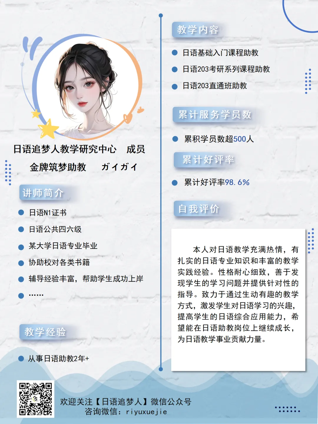 老师、助教老师会全程陪同学一直到考研复试之前,实时解决学员提出的各类日语问题!203日语取得优异成绩的关键就在于吃透真题,把每一个真题都弄懂。