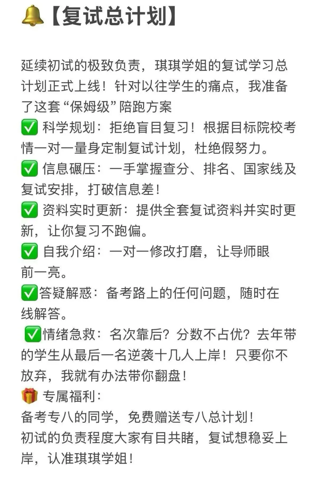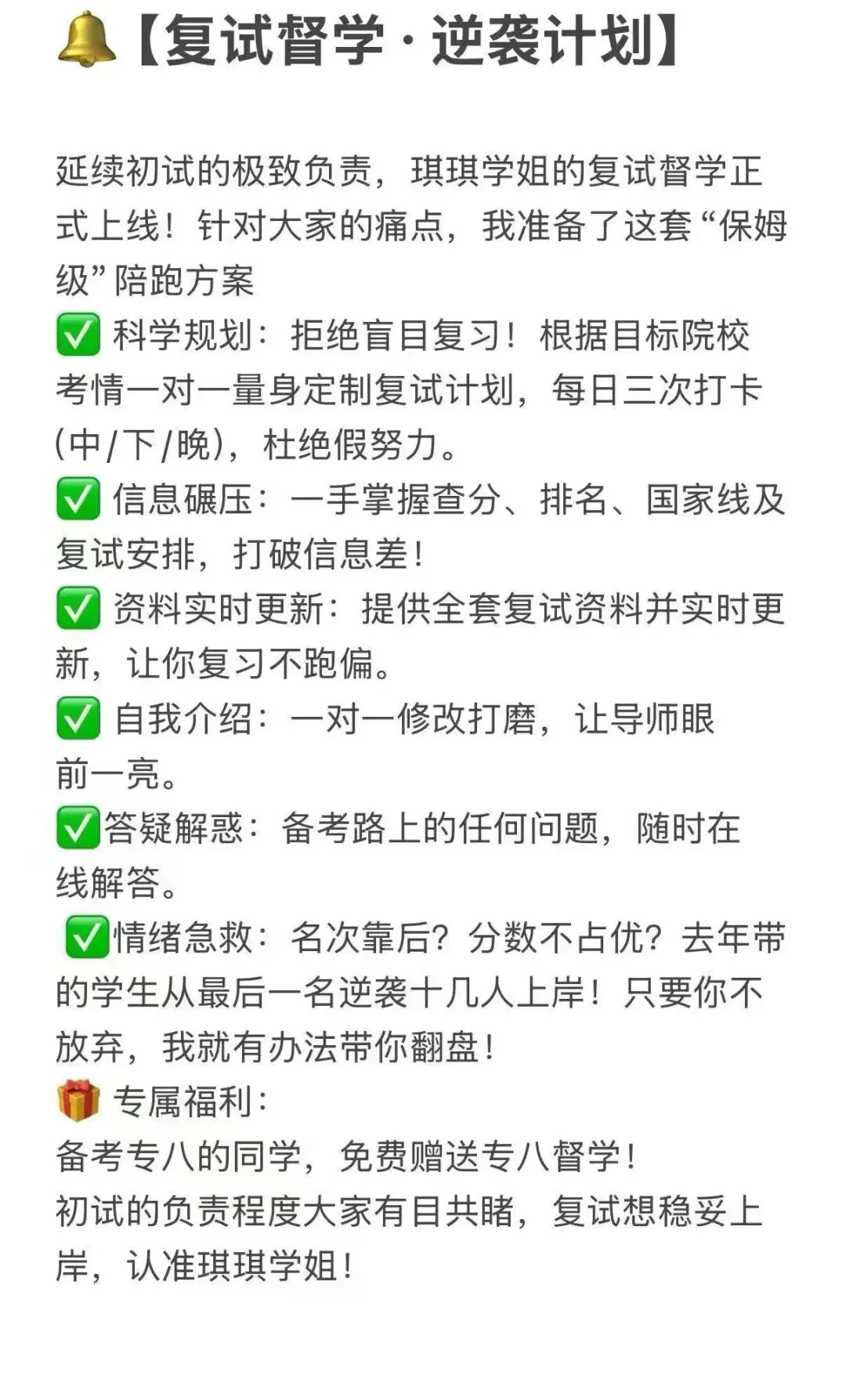 复试督学/复试资料/复试总计划/复试一对一模拟,你需要的琪琪学姐都有~欢迎咨询~跟紧琪琪学姐,助你顺利上岸~