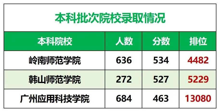 本科批“常规操作”:岭南师范学院招636人,最低分534(排位4482);韩山师范学院招272人,最低分527(排位5229),适合文化分稳过365分、统考分中上的同学。