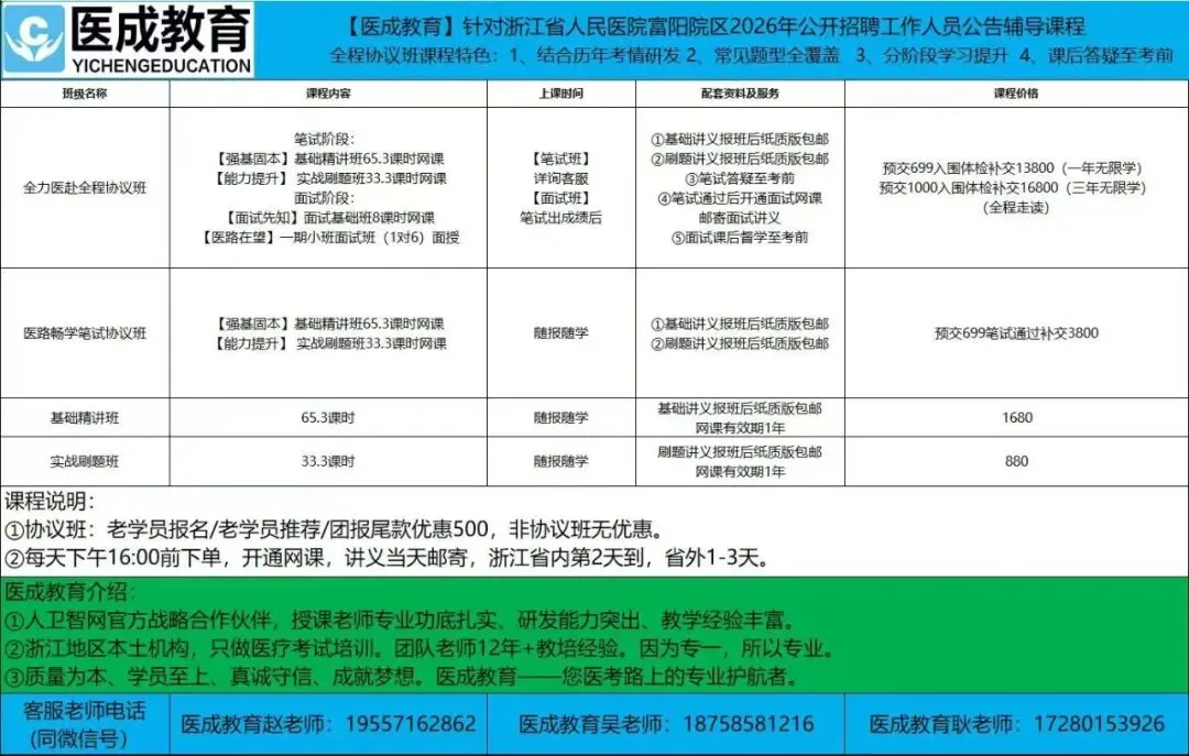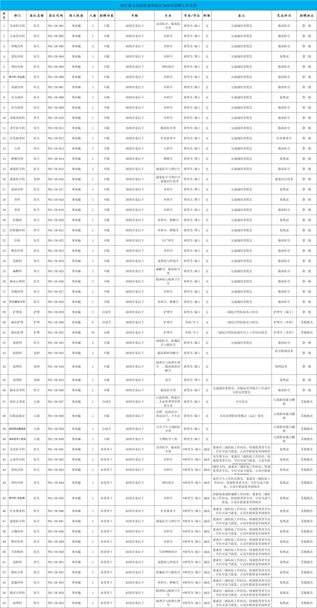 附件:浙江省人民医院富阳院区2026年公开招聘安排