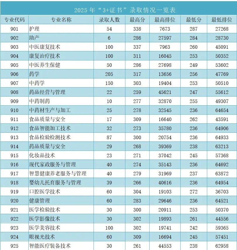 3+证书录取分最高为康复治疗技术