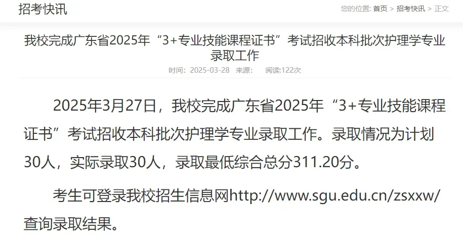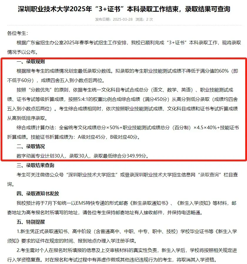 按照广东省2025年招生录取工作日程安排,广东工商职业技术大学“3+证书”本科层次招收中职毕业生已投档录取,此次投档我校计划300人,共录取300人,圆满完成了中职升本科的录取工作。
