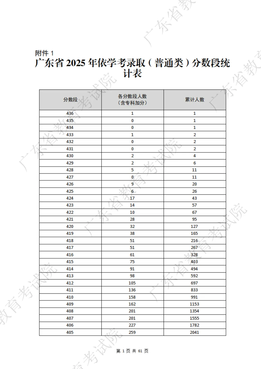 请回顾2025年分数段表,提前熟悉表格内容。