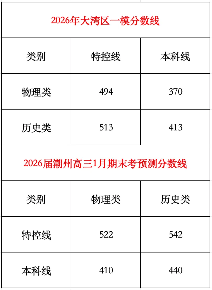 大湾区一模、潮州高三1月期末考率先公布了分数线: