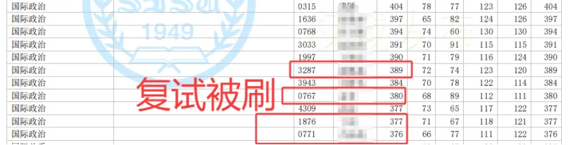 初试377分第十名(倒数第三名)靠复试逆袭总分第四上岸(反超6名),反而初试404第二优势因复试表现不好总分第7名。初试389的高分因为复试被刷。