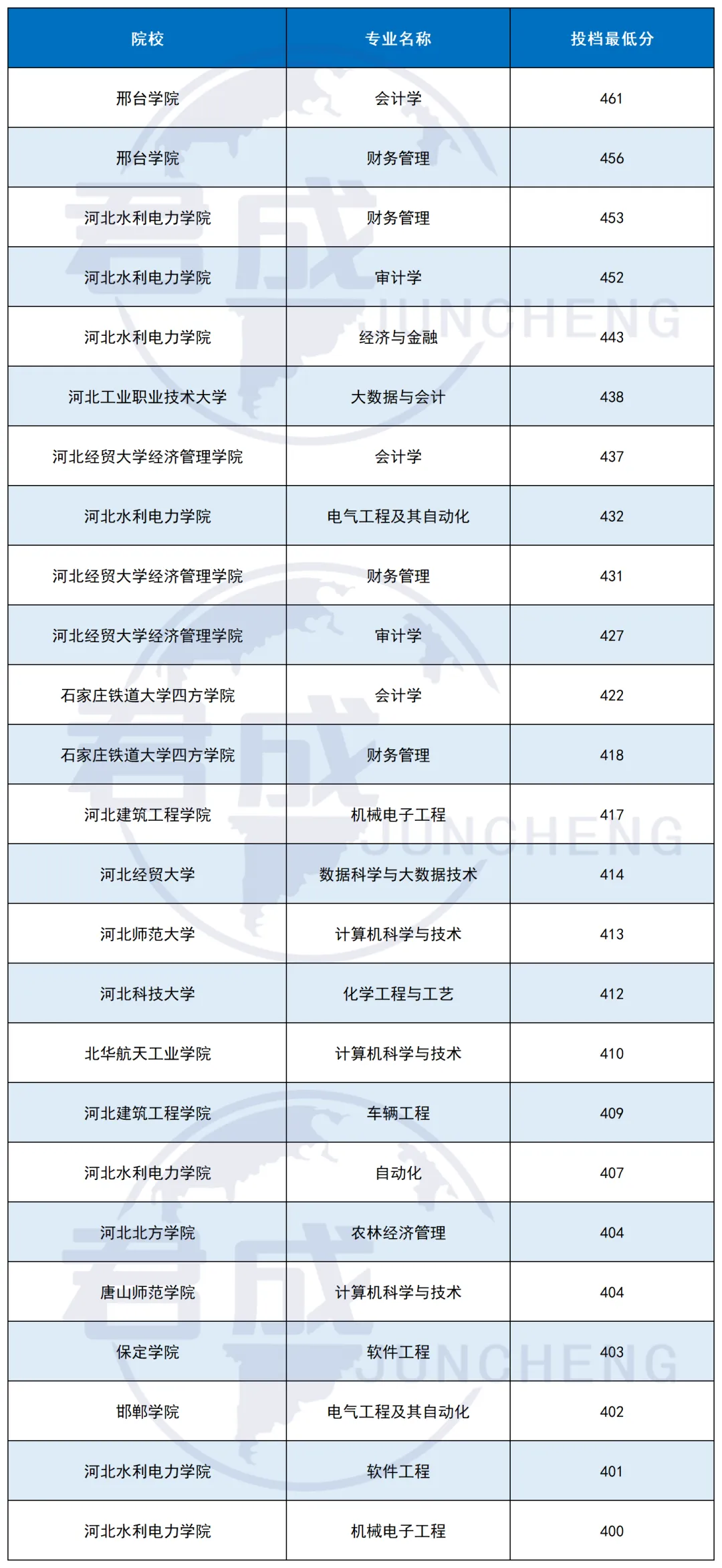 从以上表格中可以看出,目前400分以上的高分专业主要集中在会计学联考专业、电气工程联考专业、计算机联考专业、机械联考专业,这些专业本就是热门专业,报考人数多,水涨船高,分数自然也不会低。