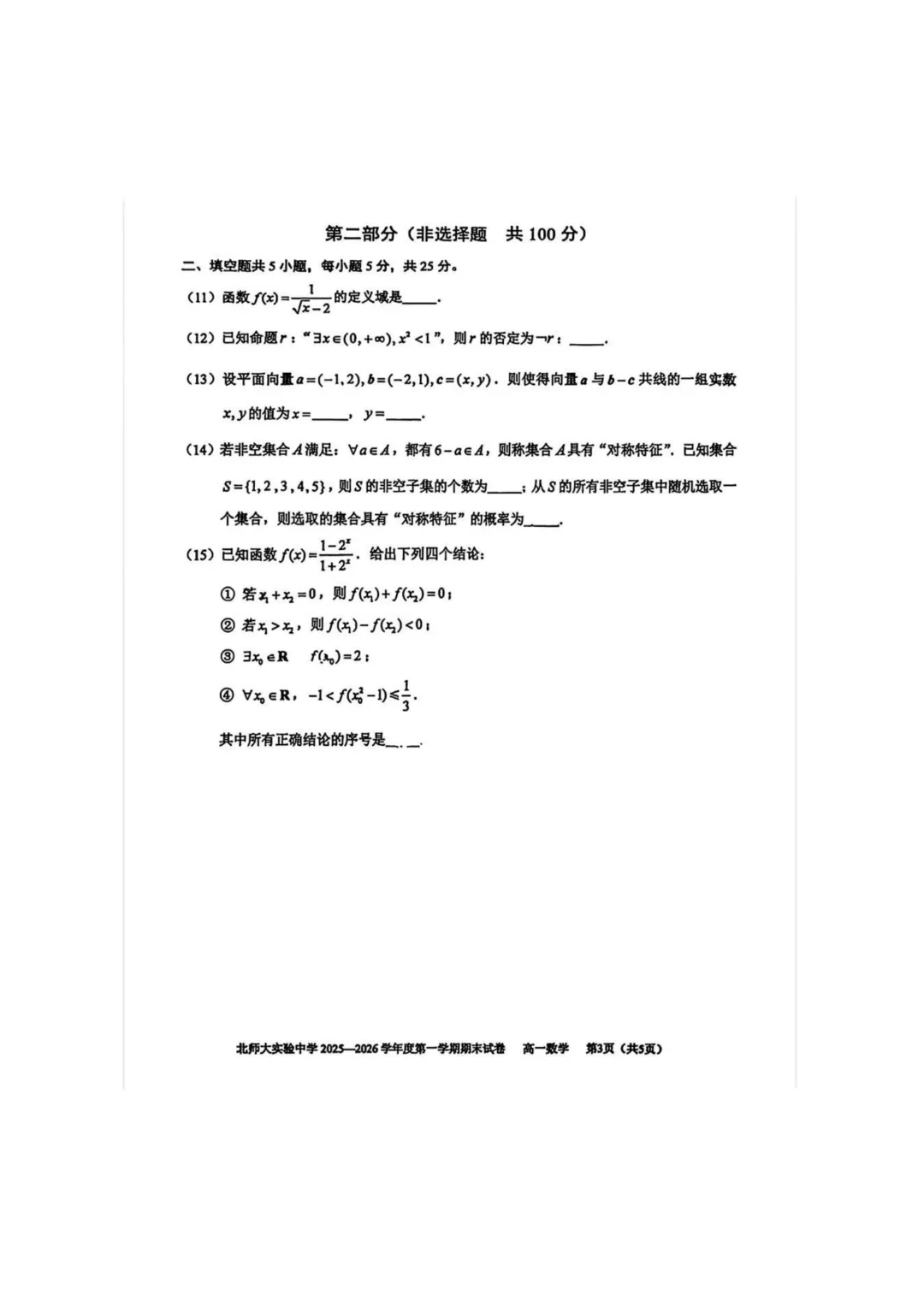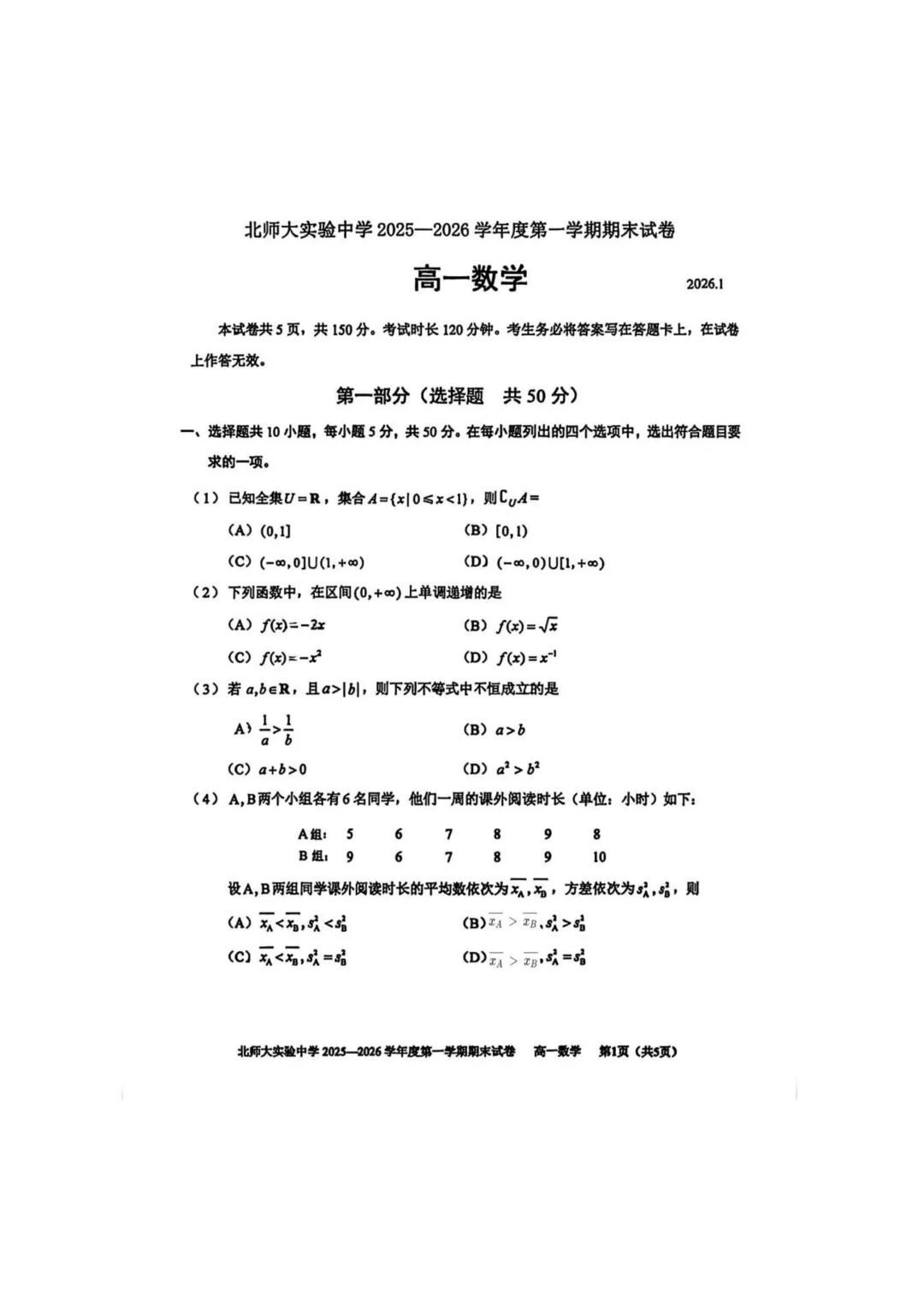 2026年北师大实验中学高一期末考试试题及答案PDF版,持续更新中,扫码进【北京高一交流群】下载↓