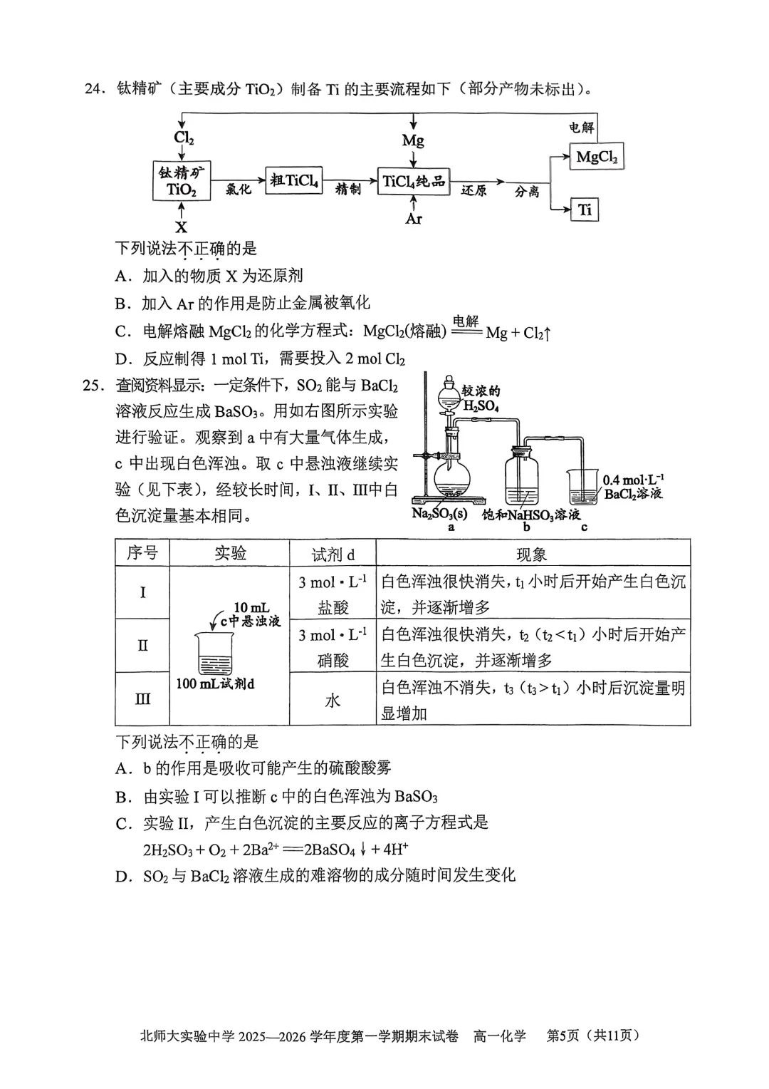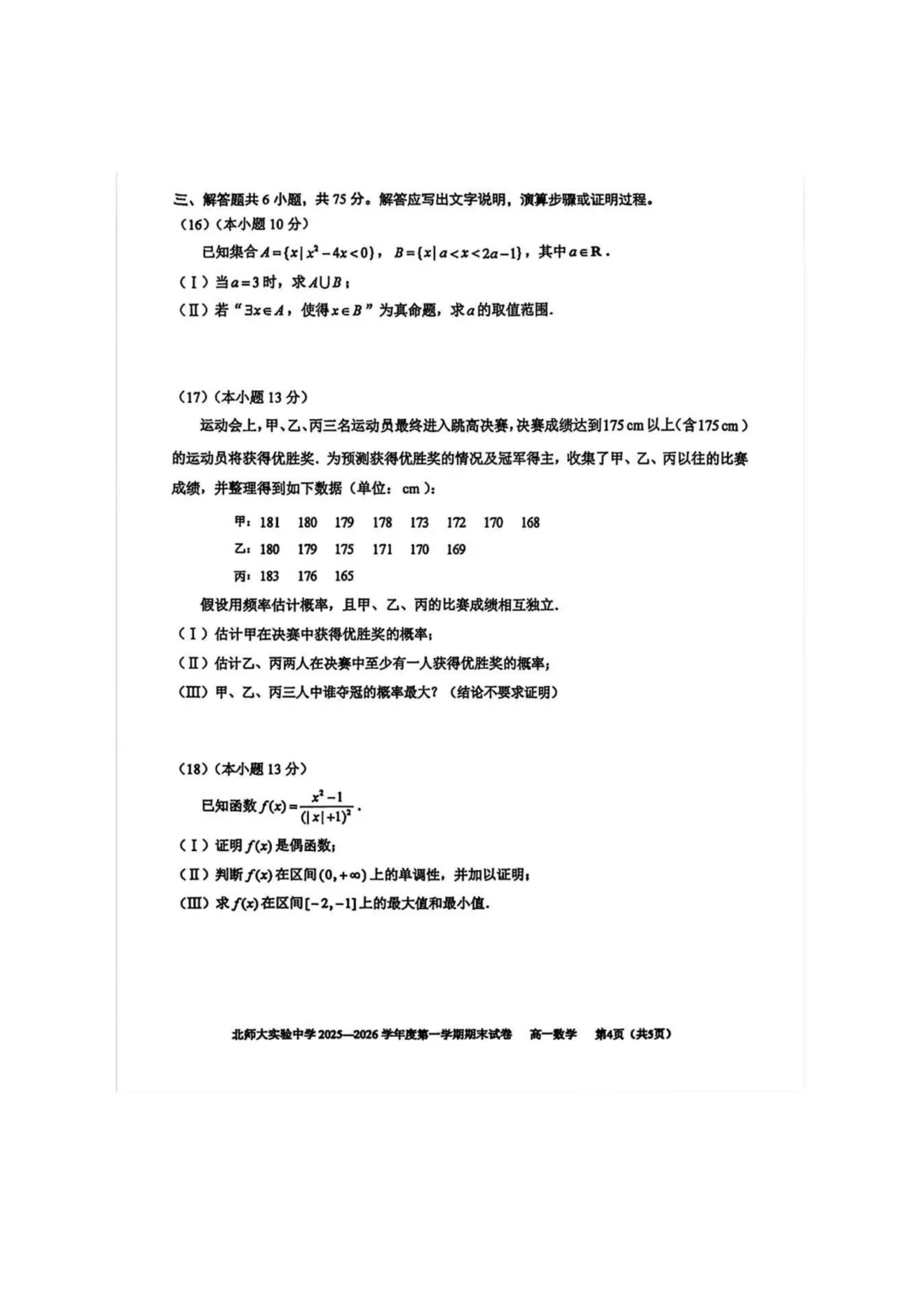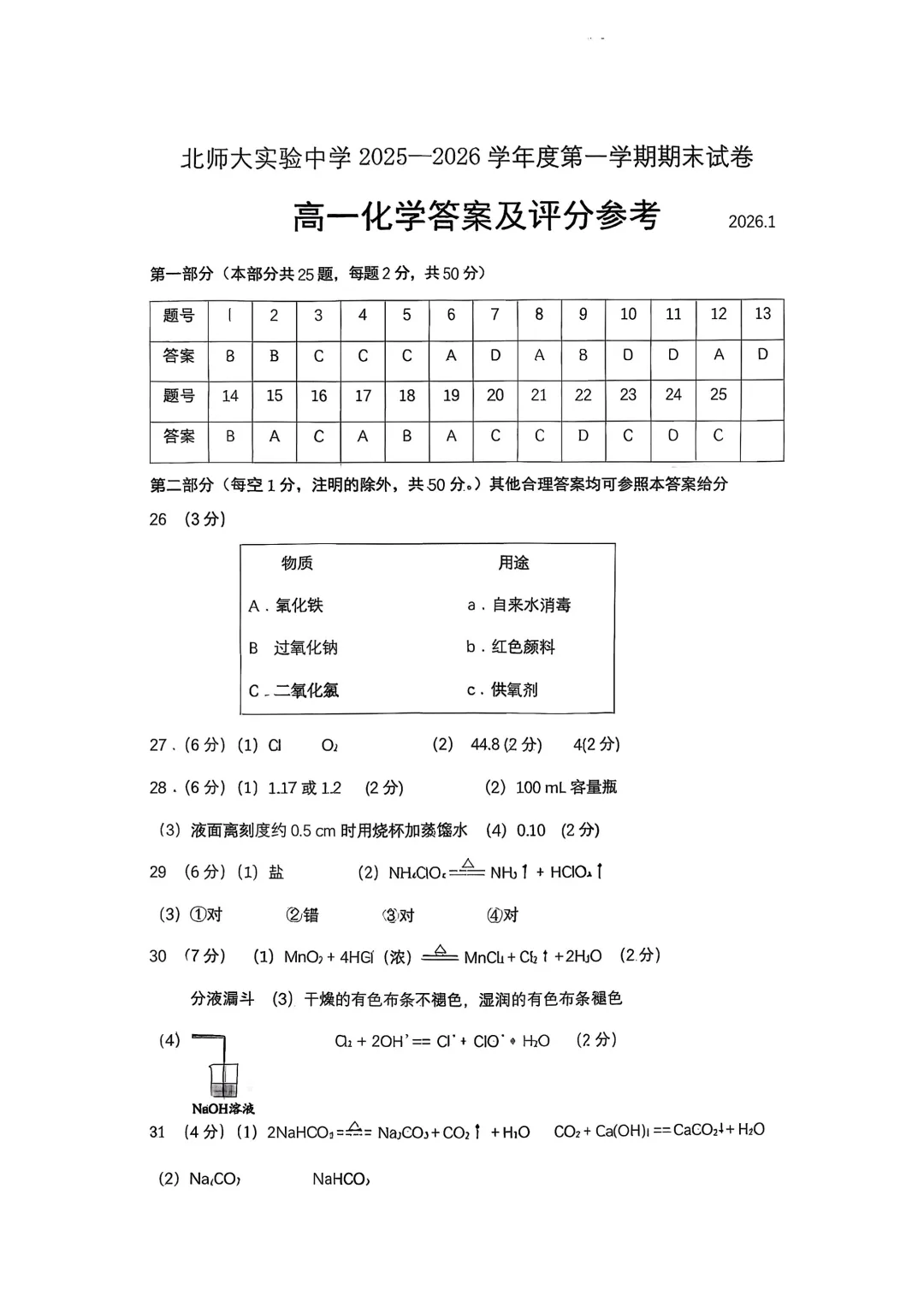 2026年北师大实验中学高一期末考试于近日开考,数学、化学试题及答案出炉,为方便考生练习,特汇总整理了2026年北师大实验中学高一期末考试试题及答案,持续更新中,一起来看!
