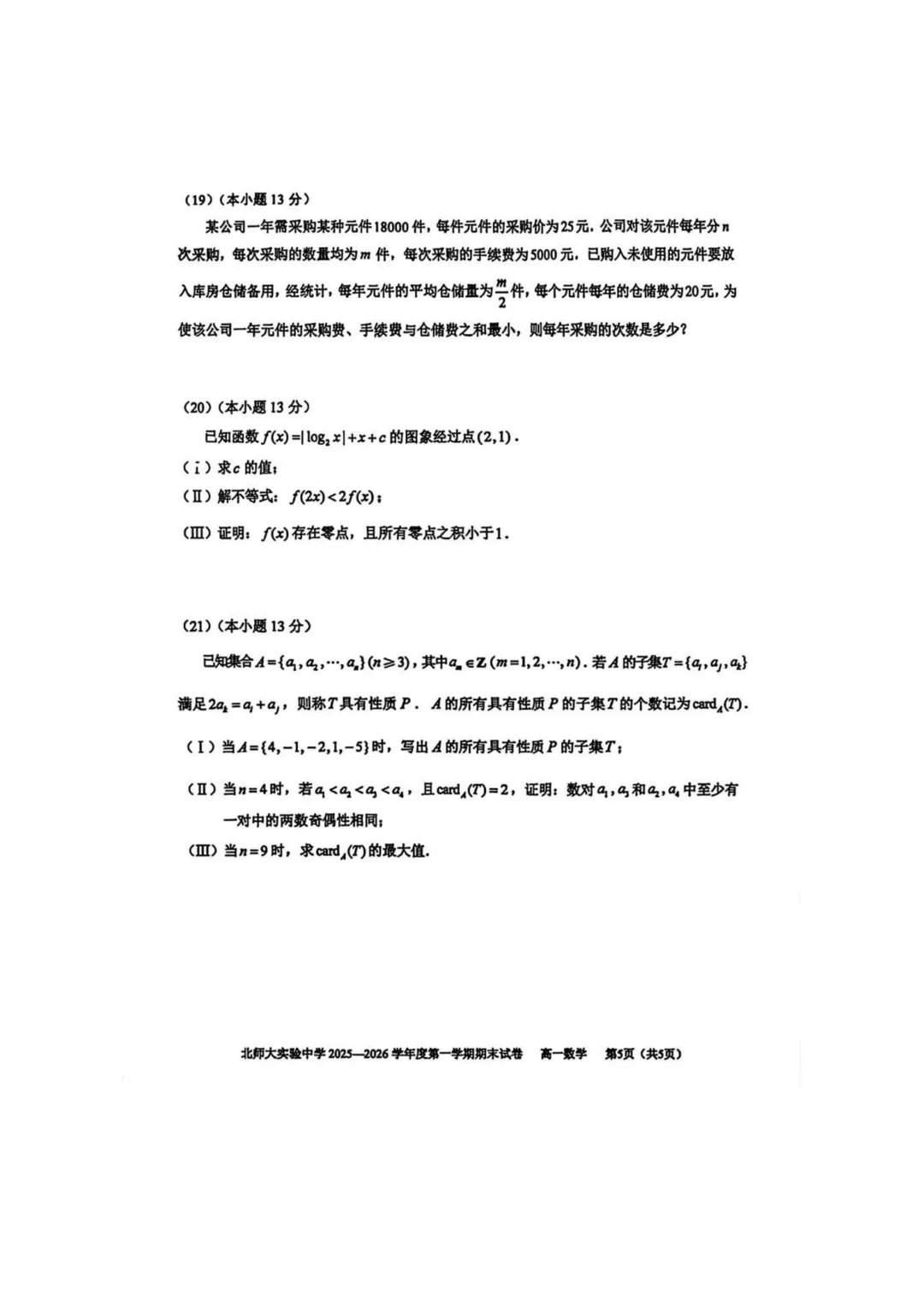 •北京高一试题及答案