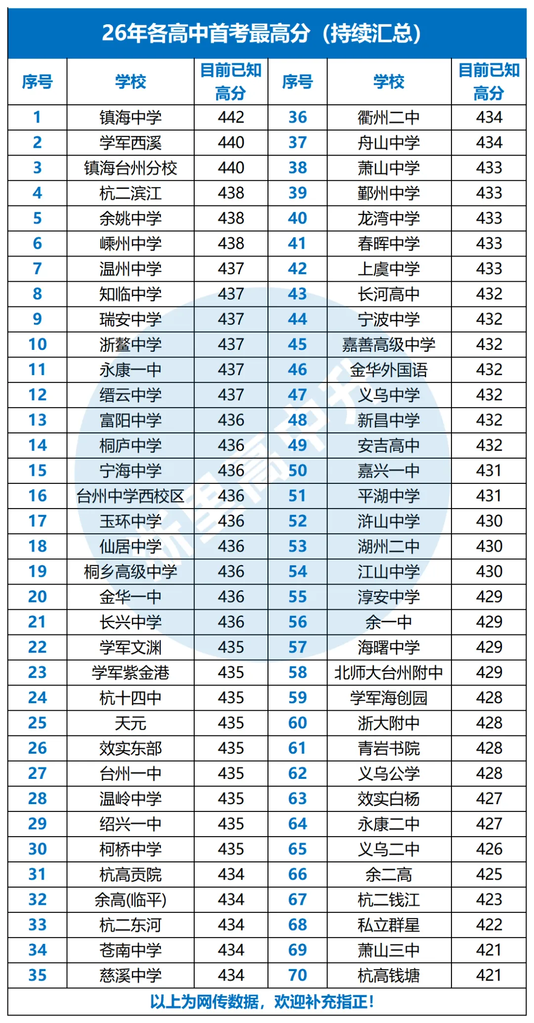 (5)要考得浙江省第1名,2026年首考成绩要达到440+分。即三门选考大致是满分,英语高考成绩是140+分。(比如今年镇海442学员各科成绩:英语144,物理99,化学100,技术99)