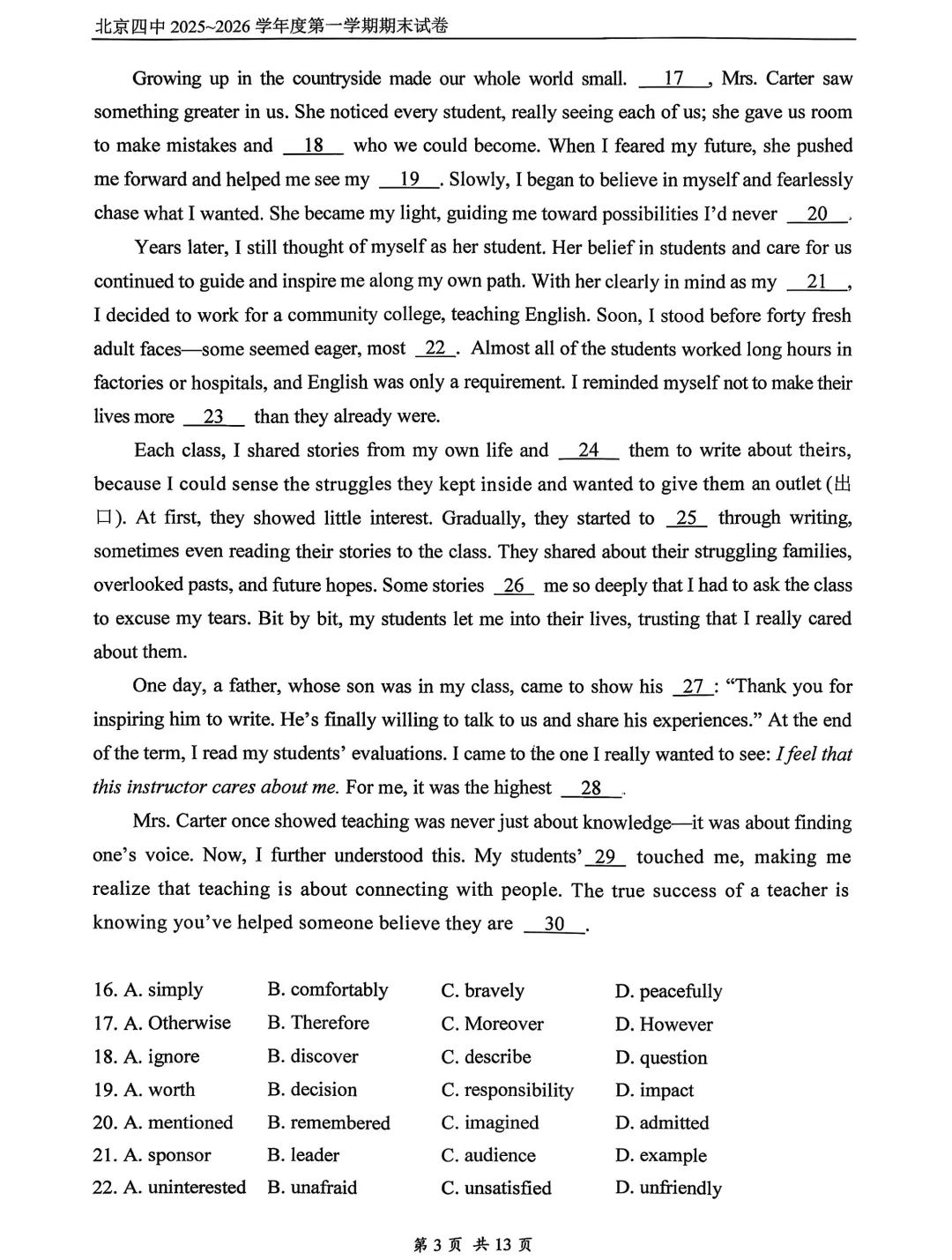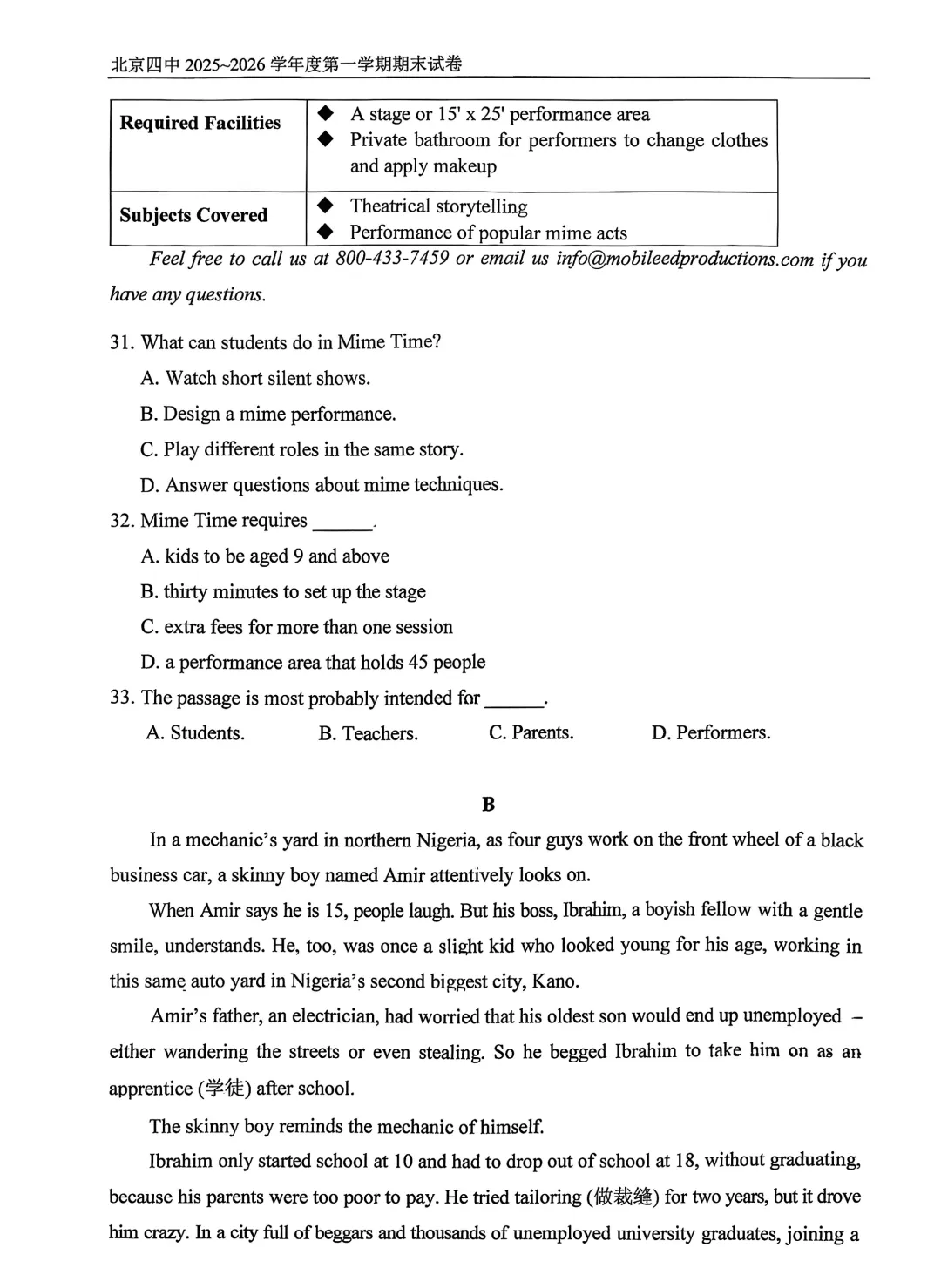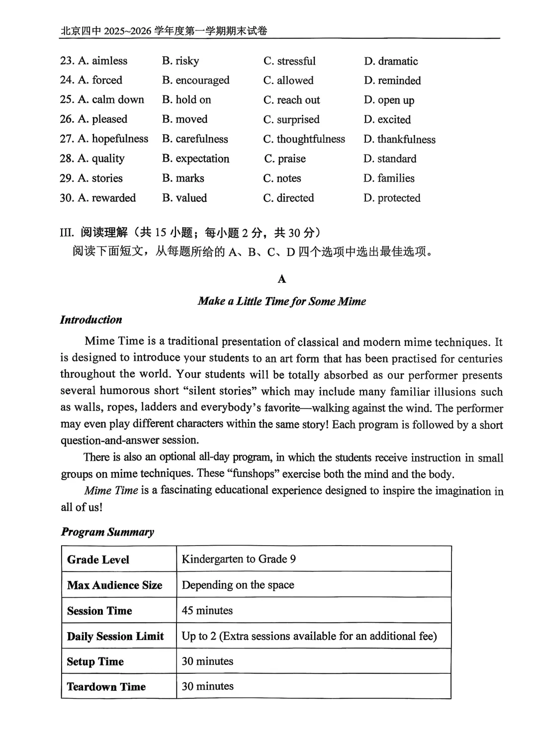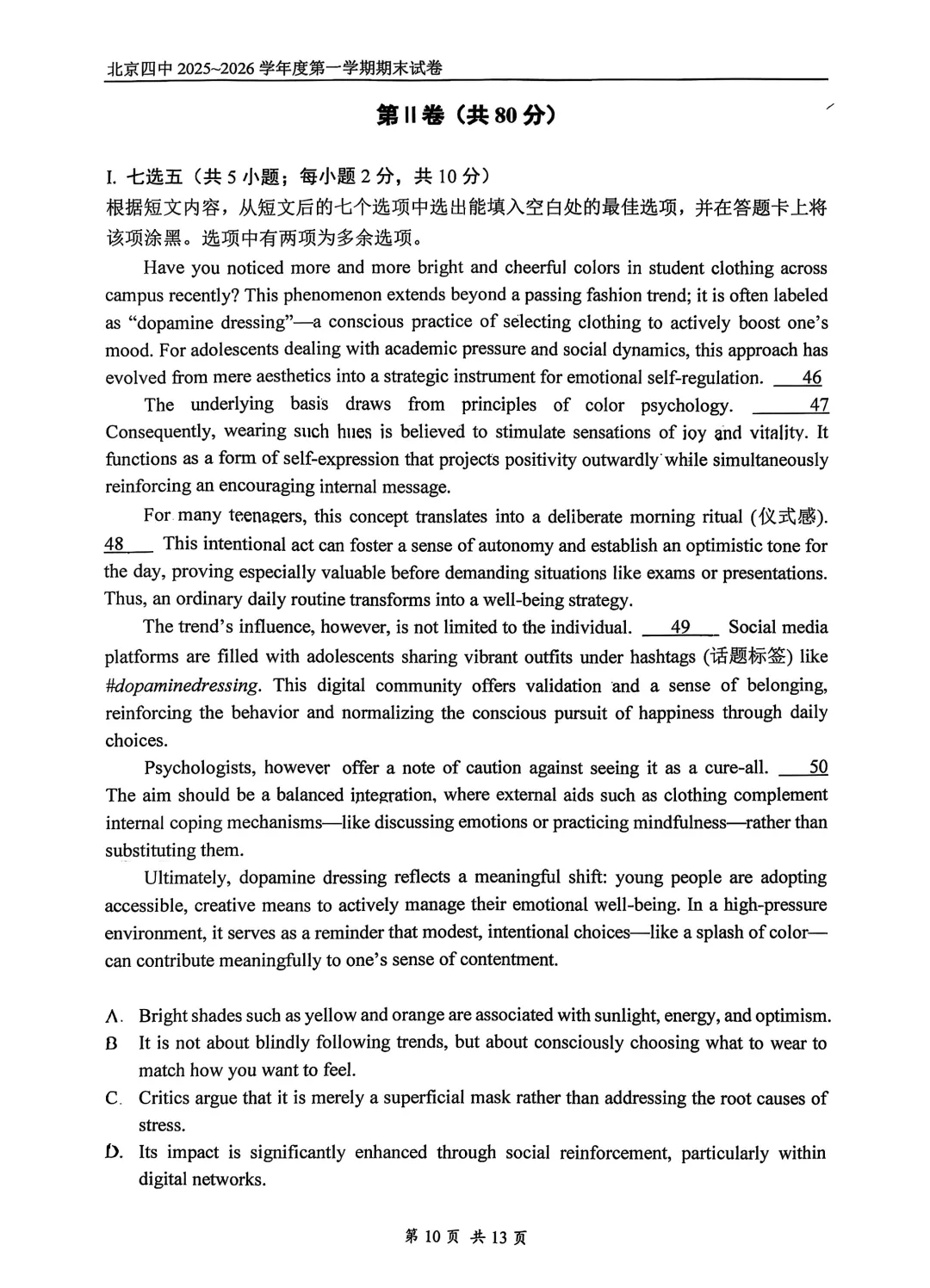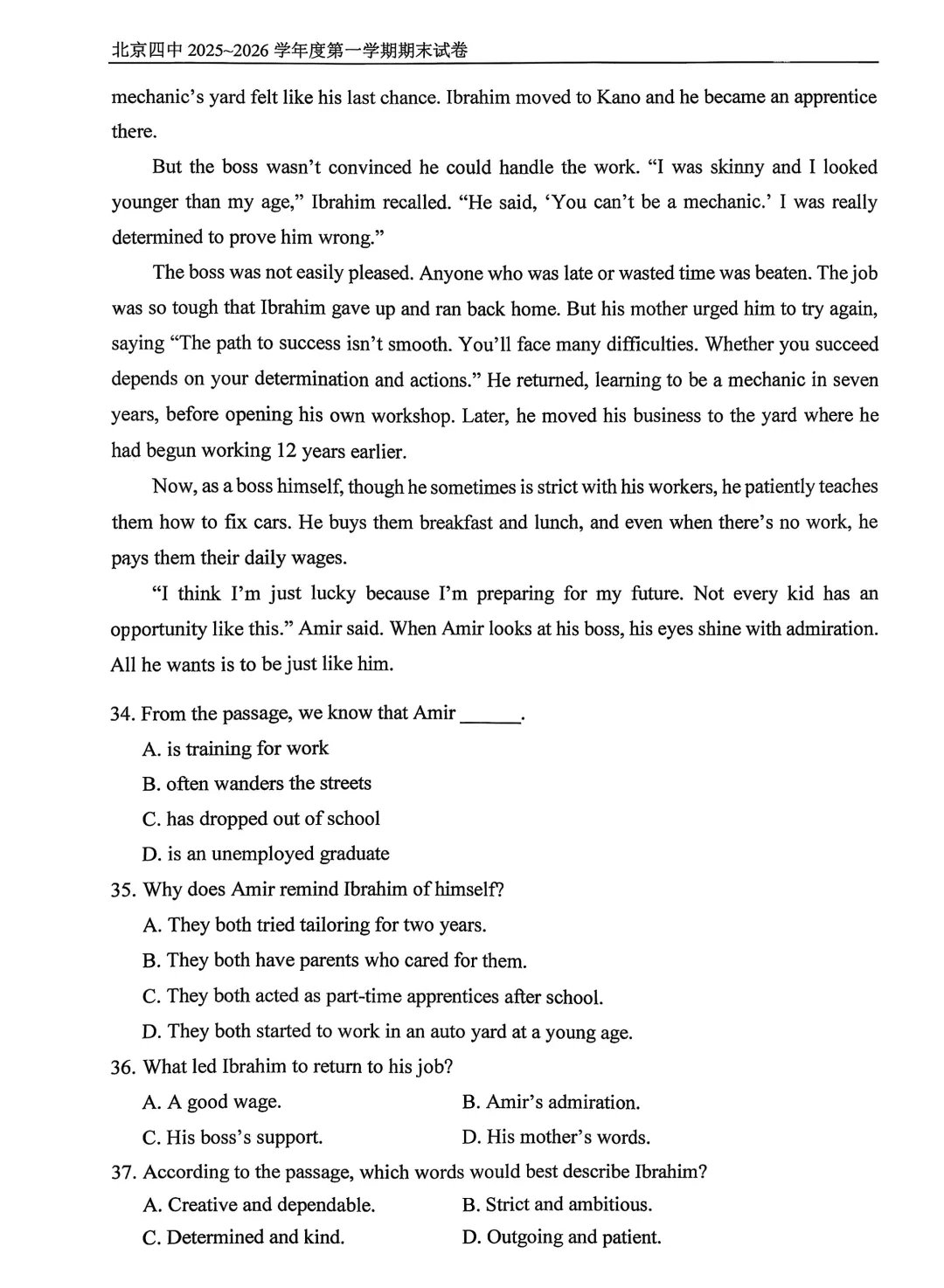 2026年北京四中高二期末考试于近日开考,英语、物理、化学、地理试题及答案出炉,为方便考生练习,特汇总整理了2026年北京四中高二期末考试试题及答案,持续更新中,一起来看!