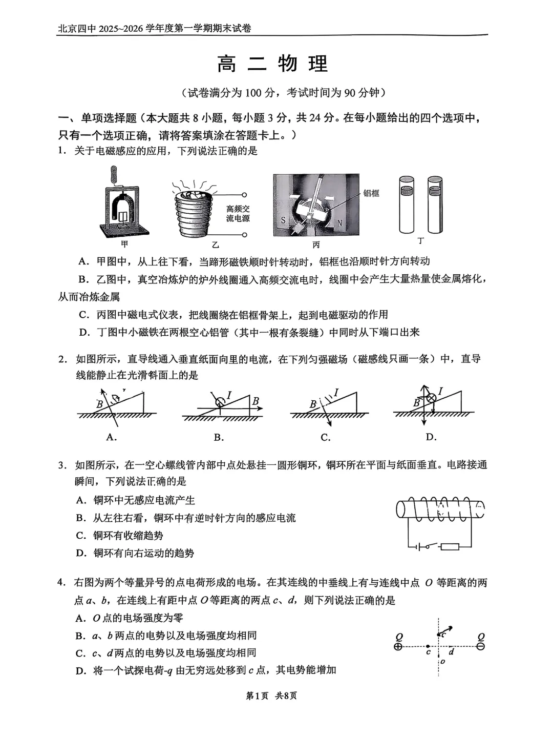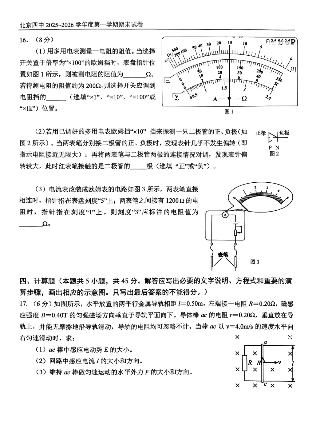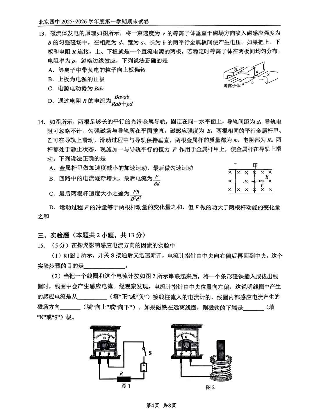 2026年北京四中高二期末考试试题及答案PDF版,持续更新中,扫码进【北京高二交流群】下载↓